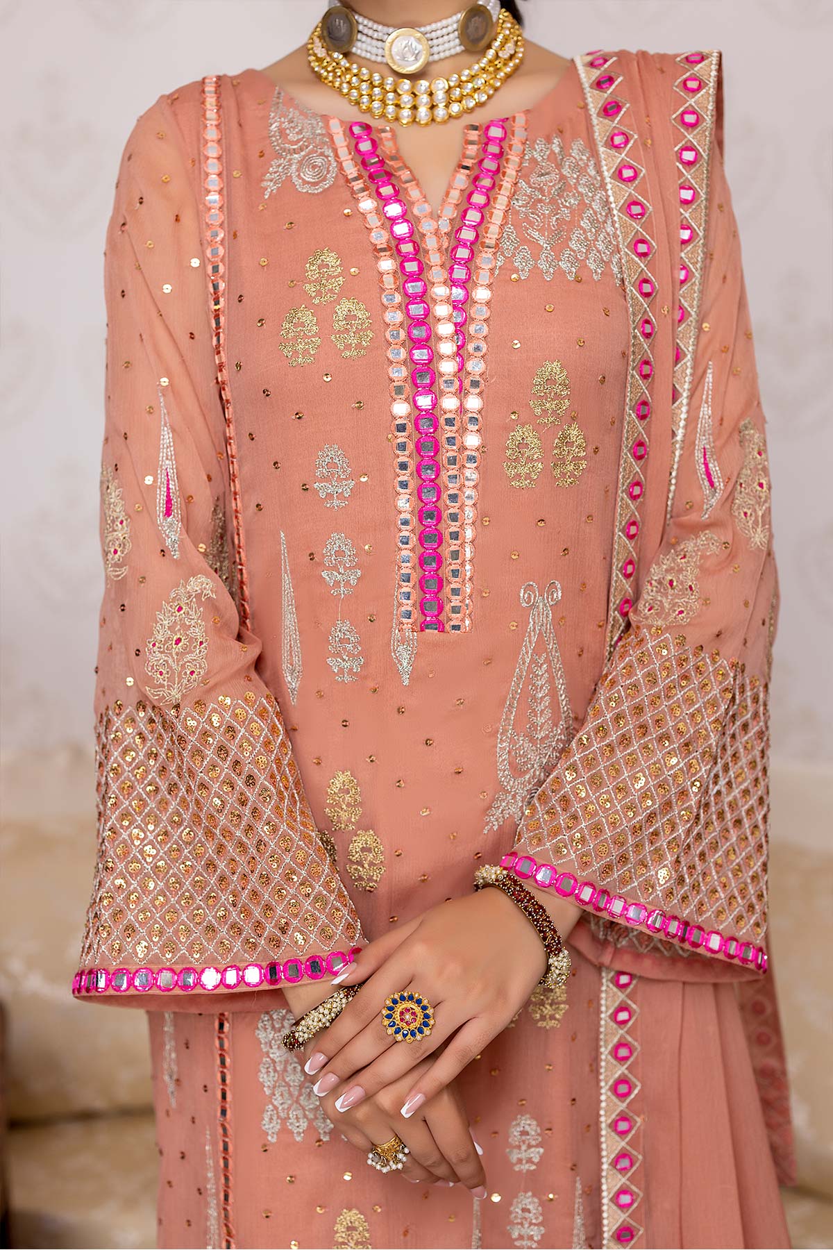 - Embroidered Front Neck + Sleeves Patti 2.5M