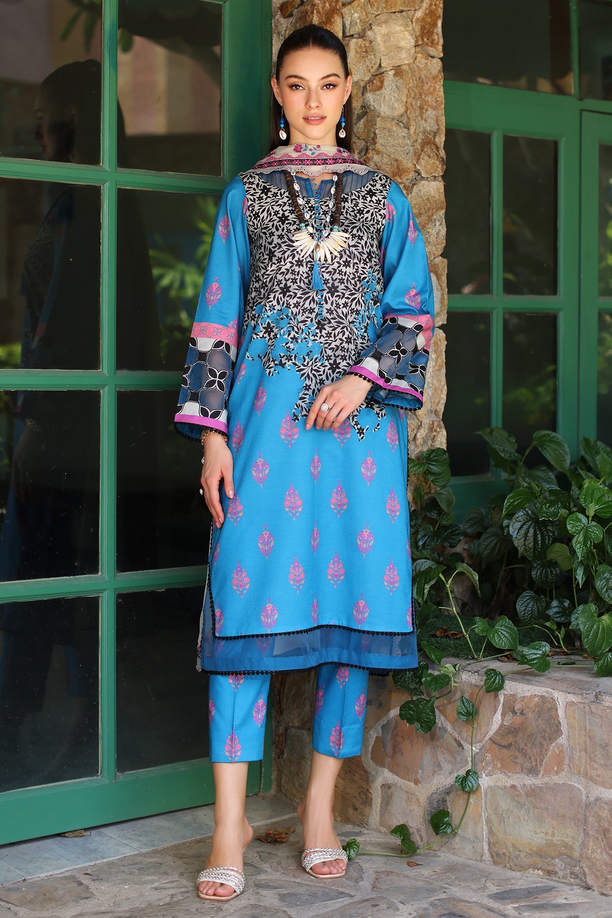 Fabric: Printed Lawn Front+Back+Sleeves 3.25MTR Printed Cotton Trouser 2.5MTR Embroidered Dyed Chiffon Dupatta 2.5MTR Embroidered Dupatta Patti 2.5 MTR |