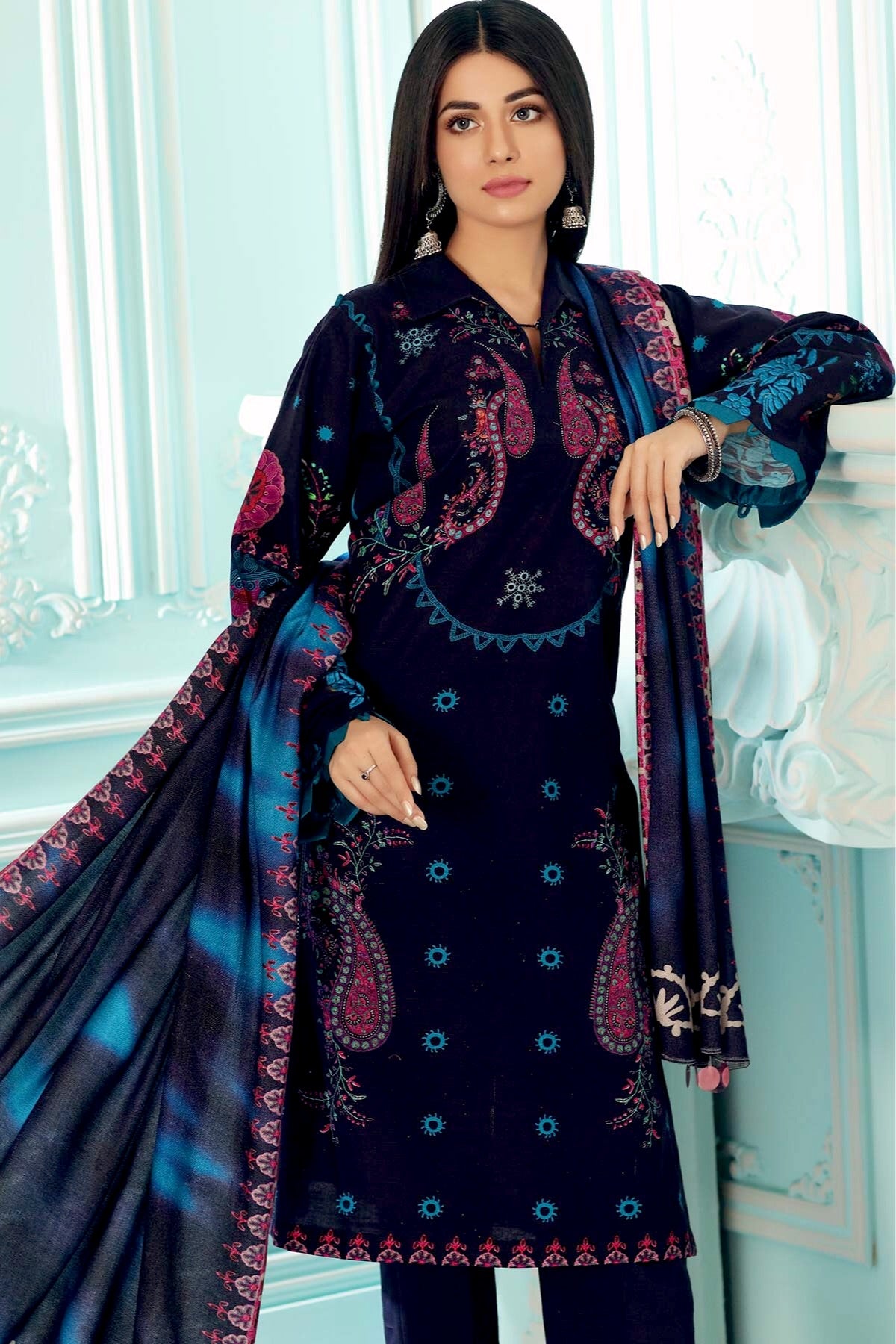 Printed Khaddar Front +Back +Sleeves 3.4M