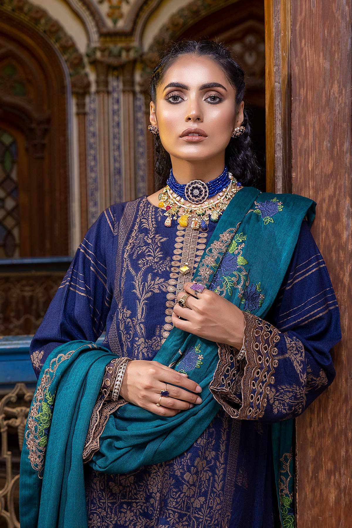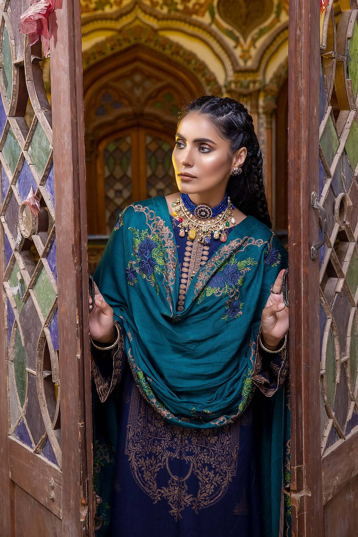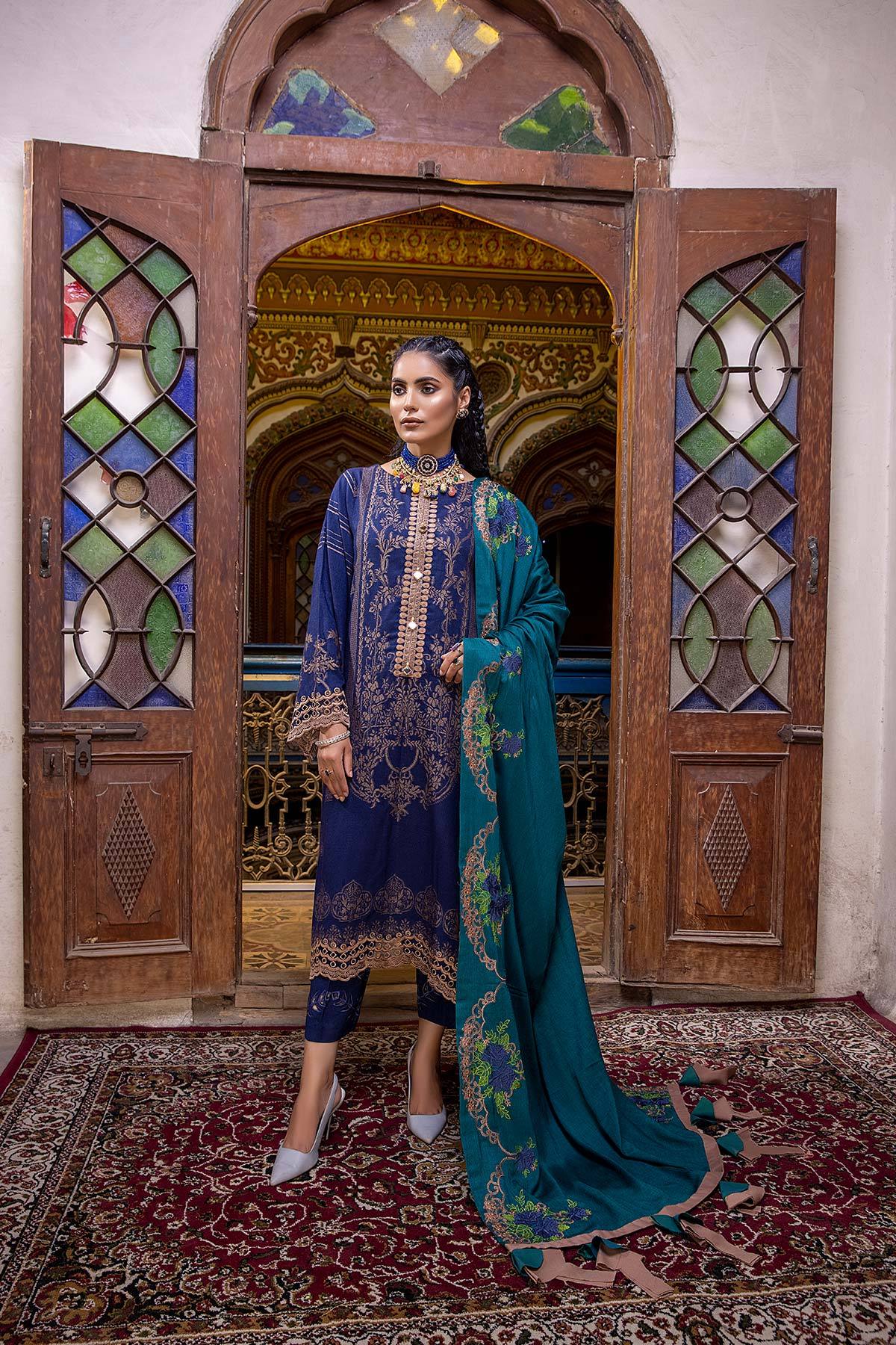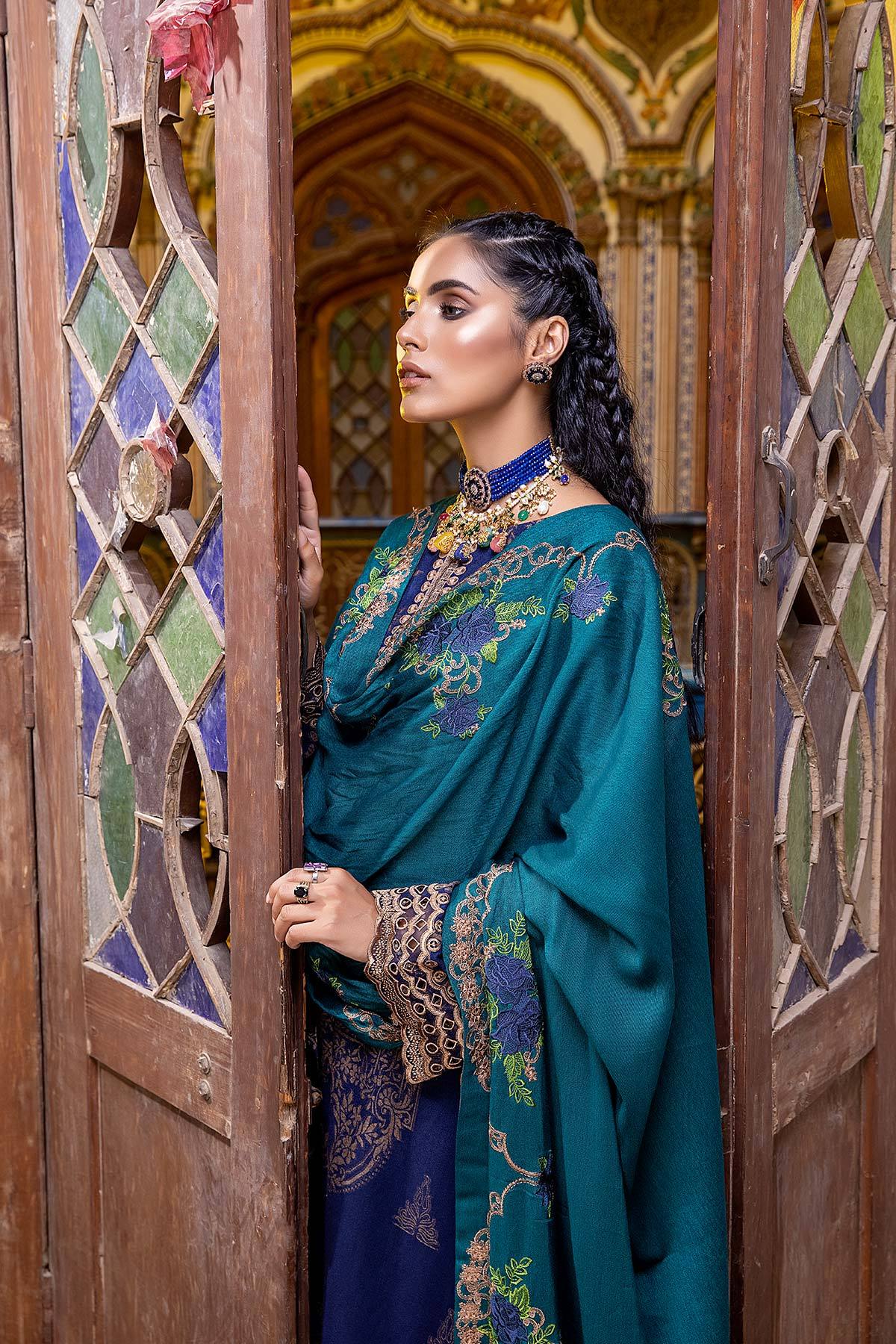 Fabric: Shirt Jacquard LEATHER Front Back + Sleeves 3.4M Embroidered Front + sleeves Patti 2M Embroidered Front Neckline Patti 1M Trouser Embroidered Leather Trouser 2.5 M Dupatta Embroidered Pashmina Shawl 2.5M |