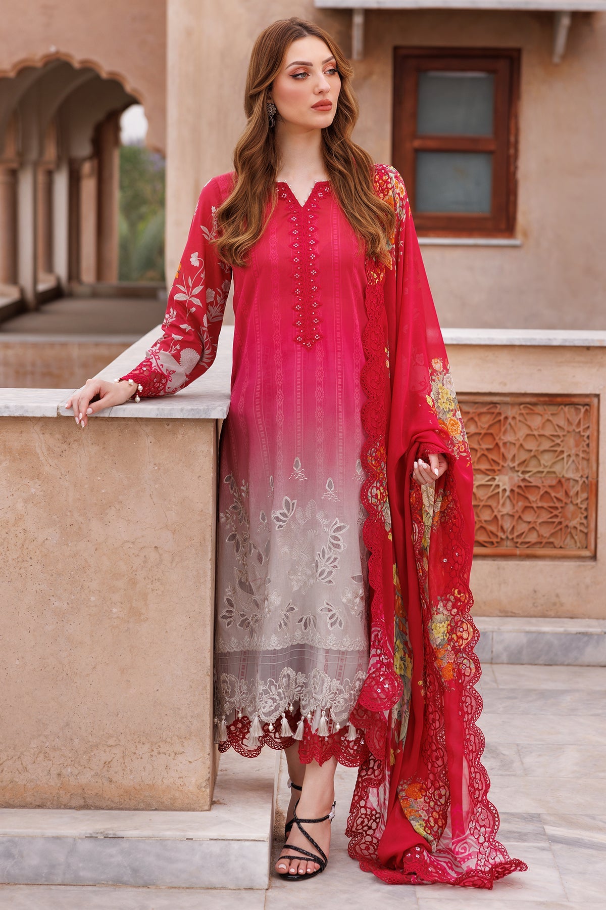 Fabric: Printed Swiss Front +Back+Sleeves 3.25MTR Embroidered Front Daman 1PCS Embroidered Front +Back Daman Patti 2MTR Embroidered Front Daman Patti 1MTR Embroidered Front Neckline 1.25MTR Embroidered Side Slit 2.5MTR Embroidered Sleeves +Trouser +Dupatta Patti 5MTR Printed Cotton Trouser 2.5MTR Embroidered Printed Chiffon Dupatta 2.5MTR |