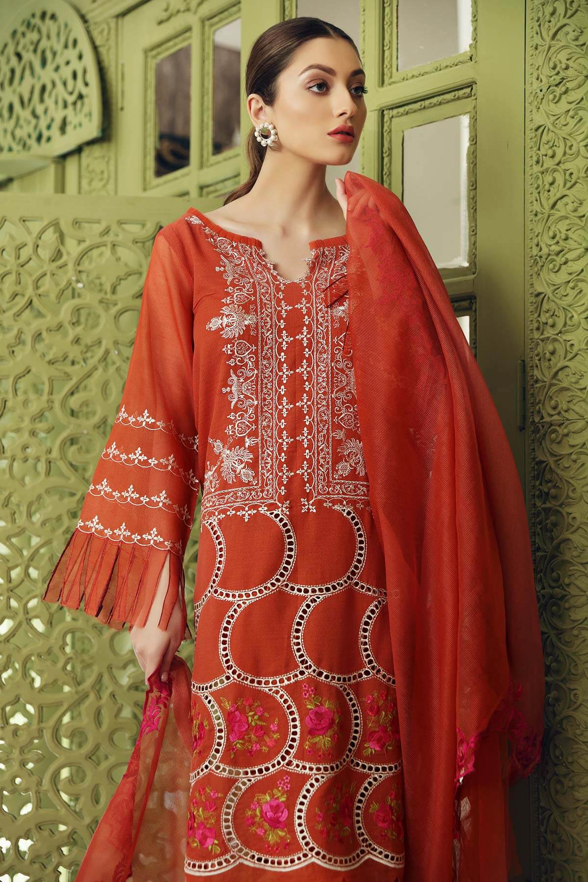 Embroidered Cotton Net Duppata 2.50 m