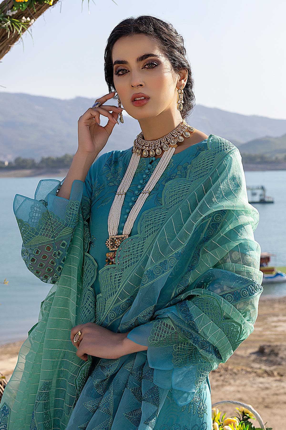 Fabric: Shirt Embroidered with Schiffli Front Lawn 1.4M Lawn Back 1.4M Embroidered with Schiffli Lawn Sleeves 26Inches Embroidered Front + Back Daman Patti 2M Trouser Embroidered Cotton Trouser 2.5M Dupatta Embroidered With Embellished Dupatta 2.5M |