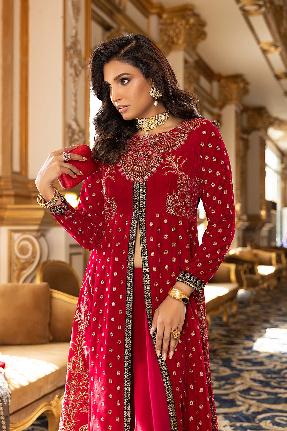 Embroidered Velvet Front Panel 4Pcs