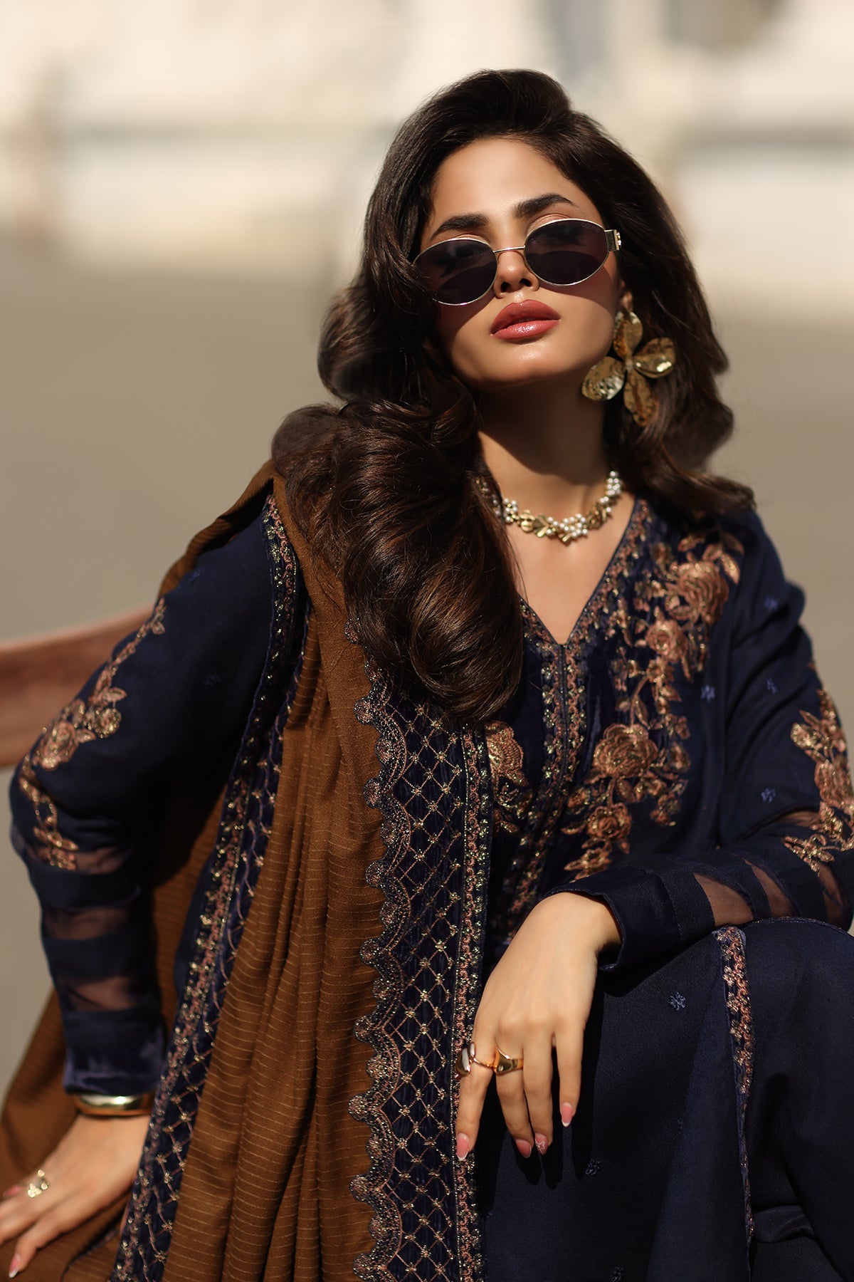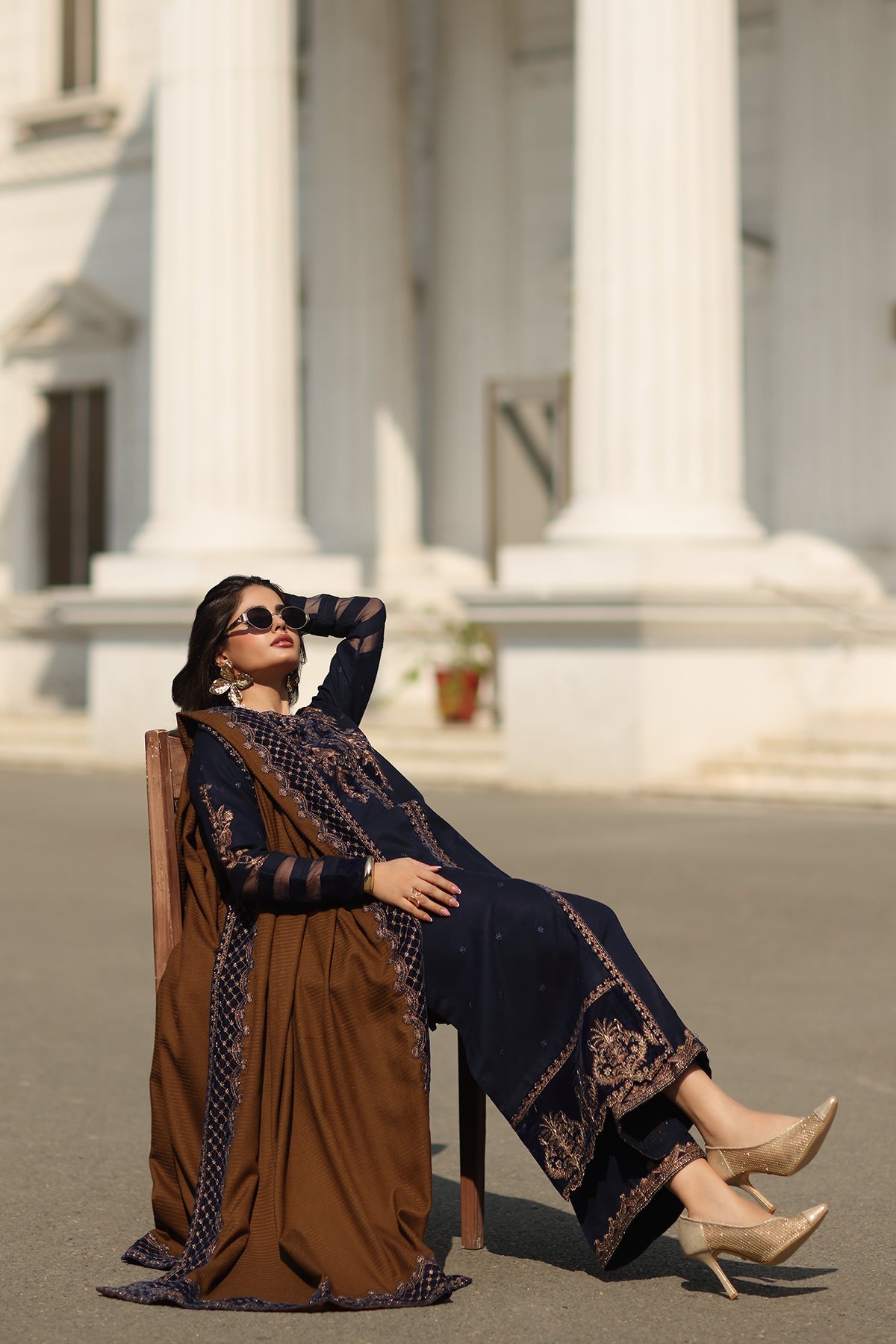 Summary: Embrace winter elegance with this stunning Navy Blue Pakistani suit from Charizma's Signature Winter collection. The kameez is crafted from luxurious velvet, a fabric renowned for its warmth and rich texture, making it perfect for the Fall/Winter season. It features exquisite embroidery along the neckline, sleeves, and hem, adding a touch of sophisticated glamour. This formal wear ensemble is a masterpiece of Pakistani ethnic fashion, ideal for evening parties and winter weddings. Step out in style with this elegant and timeless velvet outfit.