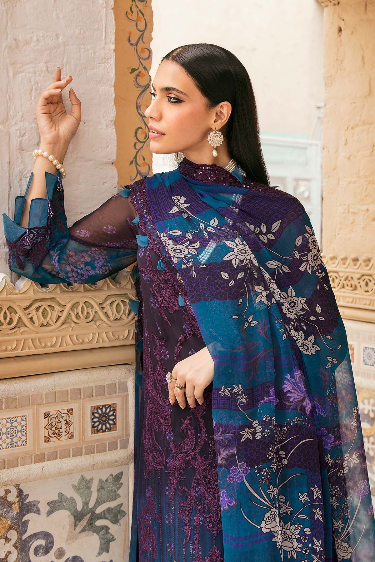 Fabric: Shirt Embroidered Front Chiffon Print 1.4M Printed Chiffon Back +Sleeves 2M Embroidered Front +Back+ Sleeves Patti 2.5M Inner Shirt 2.25M Trouser Raw Silk Trouser 2.5M Dupatta Embroidered Chiffon Print Dupatta 2.5M |