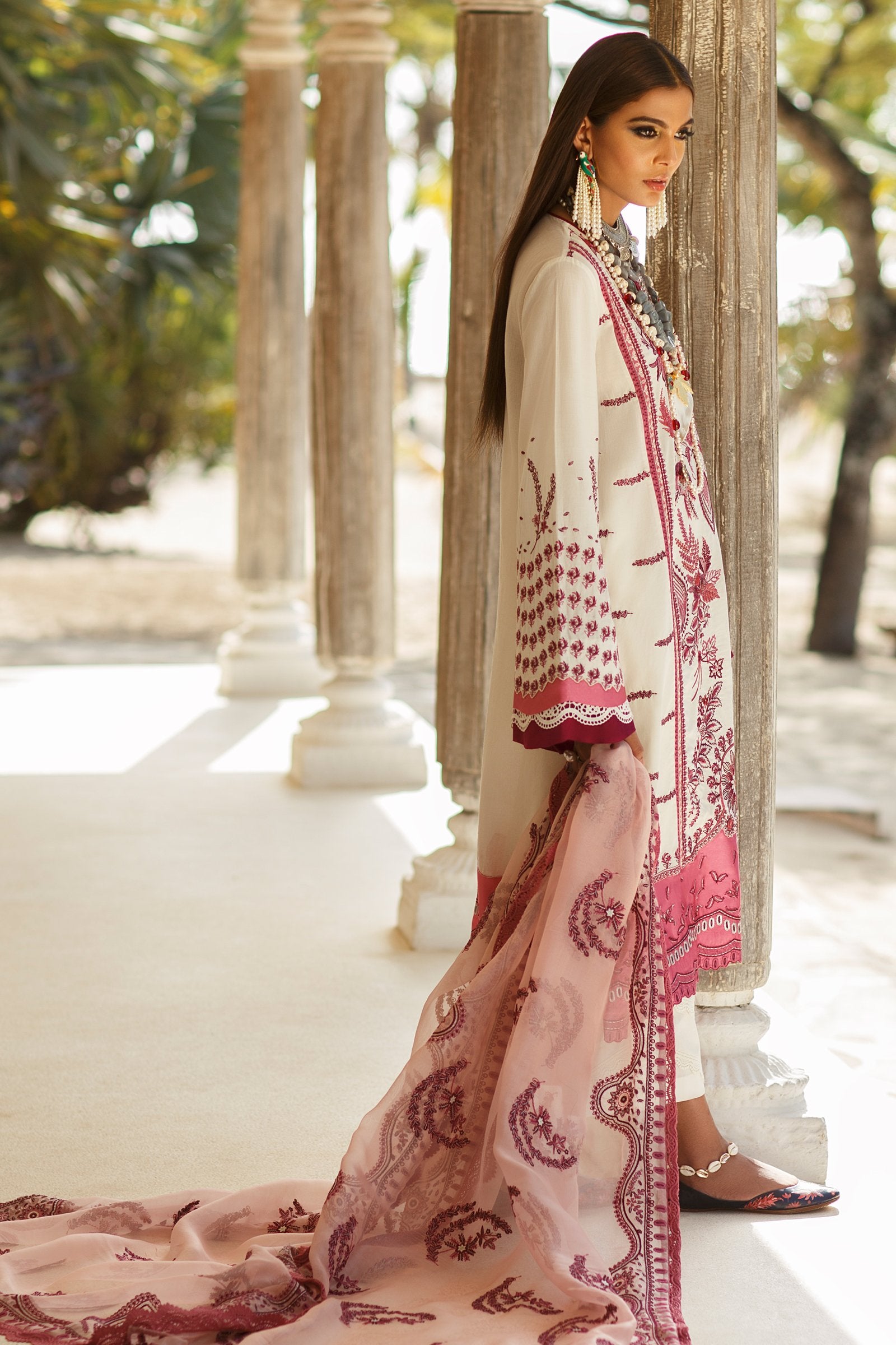 Fabric: Fabulously feminine in aspect, 'Tishala' is crafted from rosey pink lawn and adorner with intricately rendered marori and kashmiri embroideries in berry hues and lightly accented with sequin and tilla. Beautifully composed, the shirt piece is paired with a luxurious organza dupatta featuring floral and wheat sheaf motif embroideries. The shirt has a relaxed kurta silhouette with satin and lace detailing on the sleeves. Paired with izhaar style culotte pants with lace details. The organza dupatta features lace detailing on all four corners with a wider lace on the hem. Embroidered Dupatta (Organza ) 2.50 Meters Embroidered Shirt Front (Lawn) 0.33 Meter Dyed Shirt Back (Jacquard ) 01 Meter Embroidered Sleeves (Lawn) 0.65 Meters Dyed Trouser (Cotton) 2 Meters Embroidered Side Extensions (Lawn) 0.66 Meters Embroidered Hem Patch (Satin Silk) 01 Pieces Embroidered Sleeves Patti (Satin Silk) 1.30 Meters Embroidered Neckline Patch (Satin Silk) 01 Pieces Embroidered Duppata Patch (Organza ) 02 Pieces |