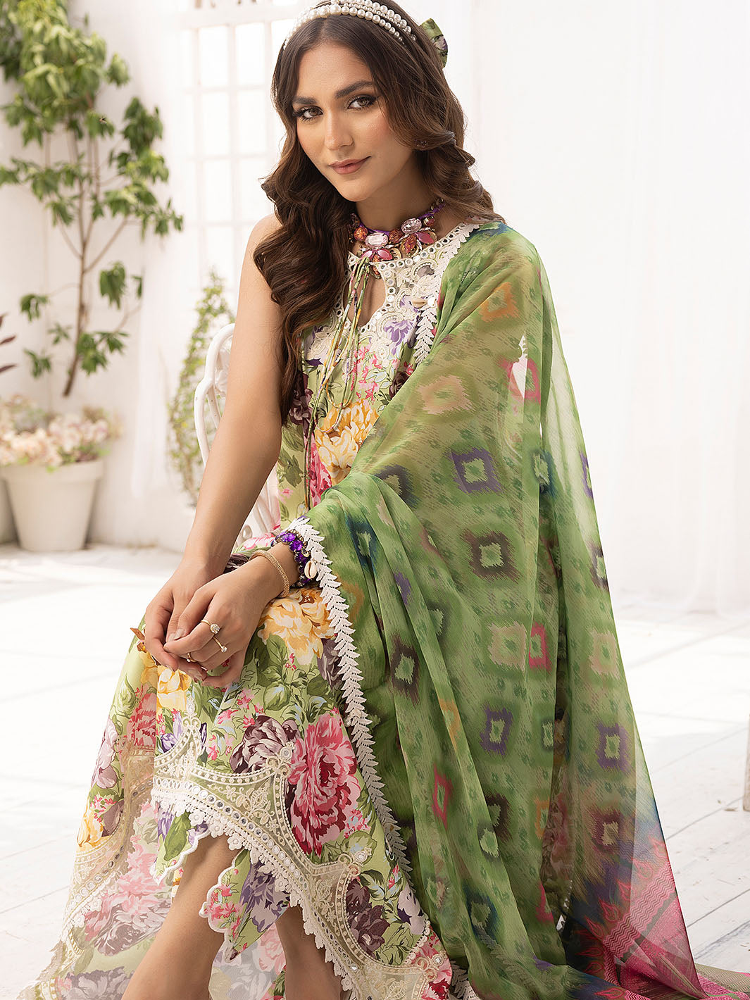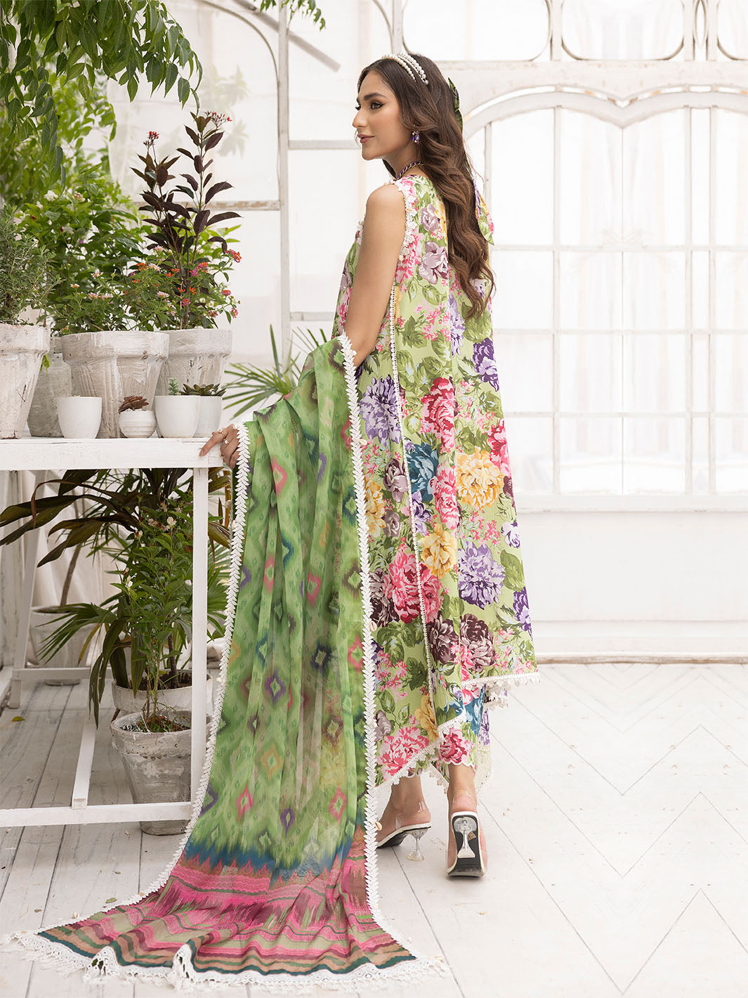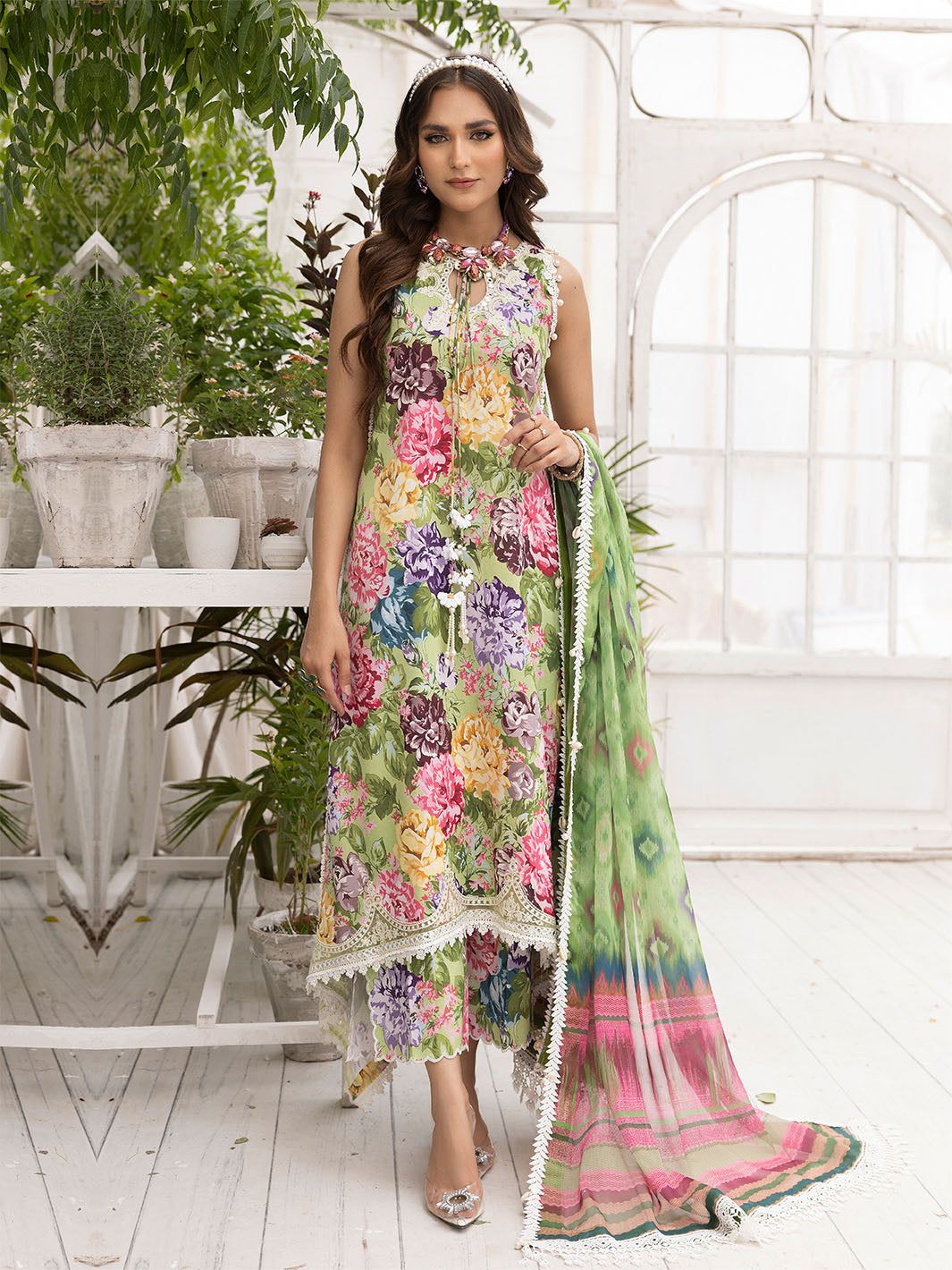 Fabric: Shirt Lawn Printed Shirt 3 Meter Embroidered Neckline on organza 1 Pc Embroidered Daman Border on Organza 2 Meter Dupatta Digital Printed Chiffon Dupatta 2.5 Meter Trouser Digital Printed Cambric Trouser 2.5 Meter |