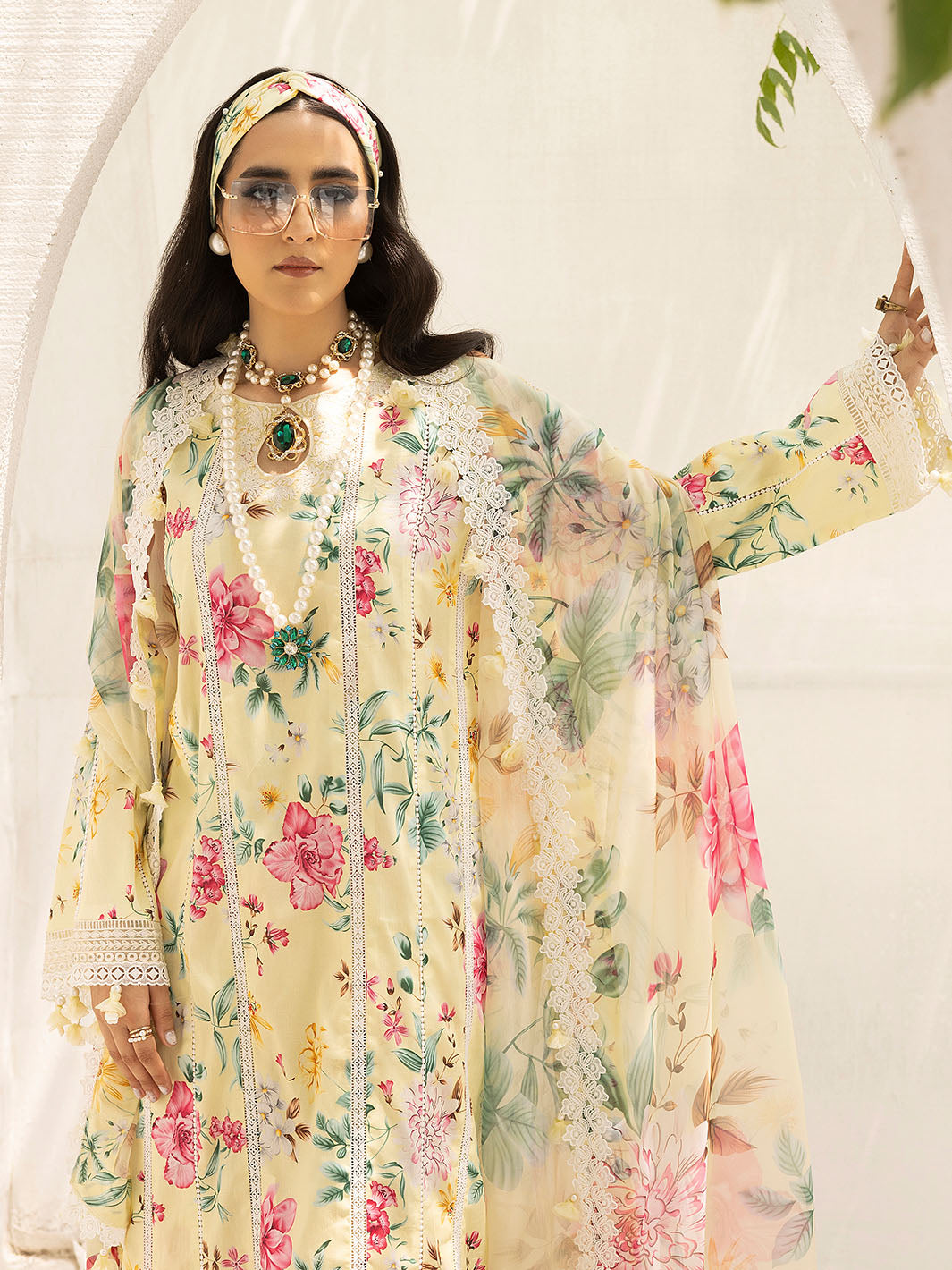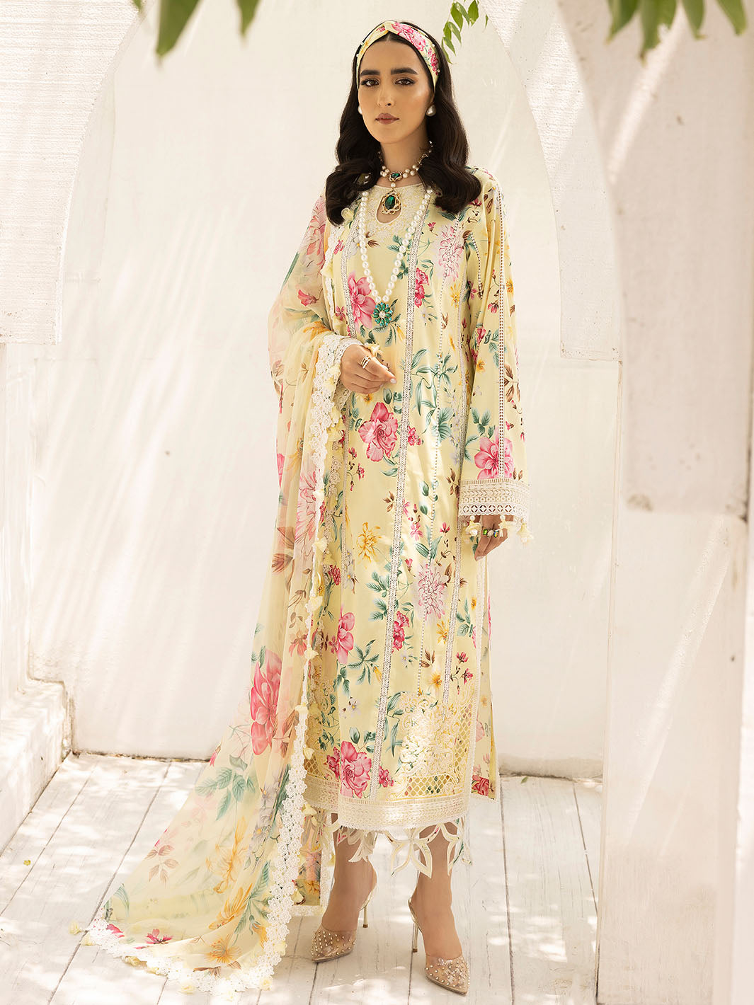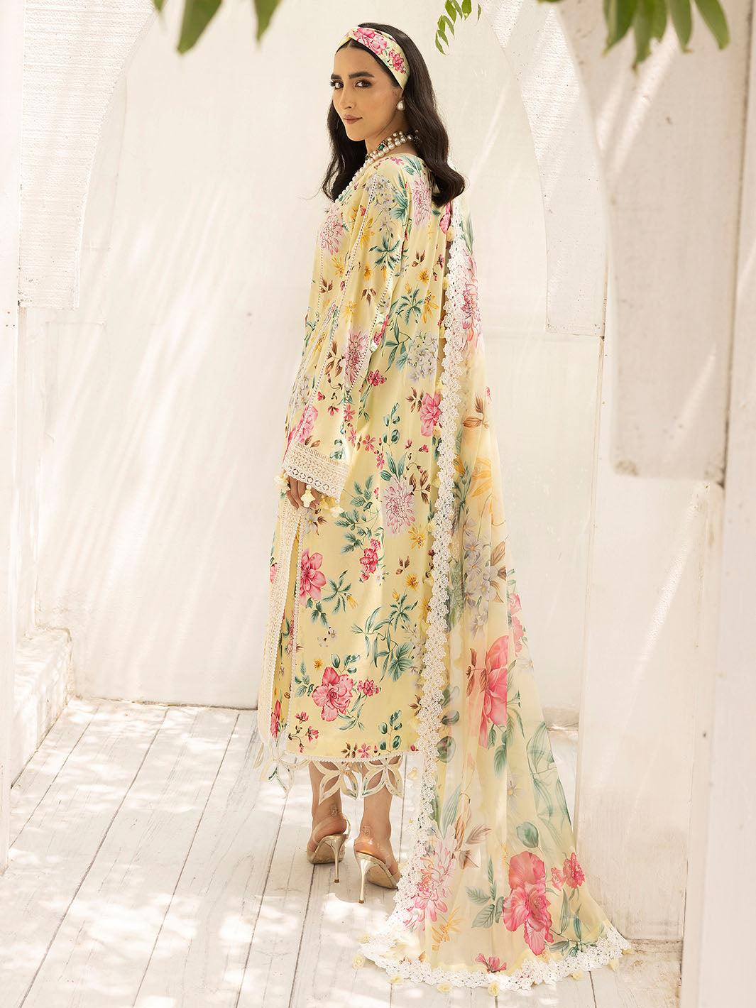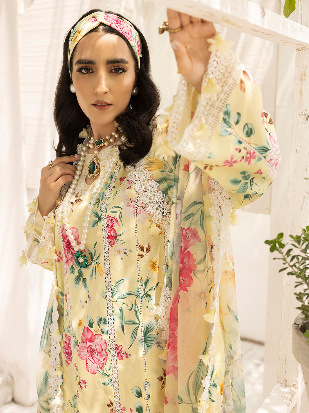Fabric: Shirt Lawn Printed Shirt 3 Meter Embroidered Neckline on Organza 1 Pc Embroidered Corner 2 Pc Embroidered Sleeves Patti 1 Meter Dupatta Embroidered Patti on Organza 1 Meter Dupatta Digital Printed Chiffon Dupatta 2.5 Meter Trouser Trouser Digital Printed Cambric Trouser |
