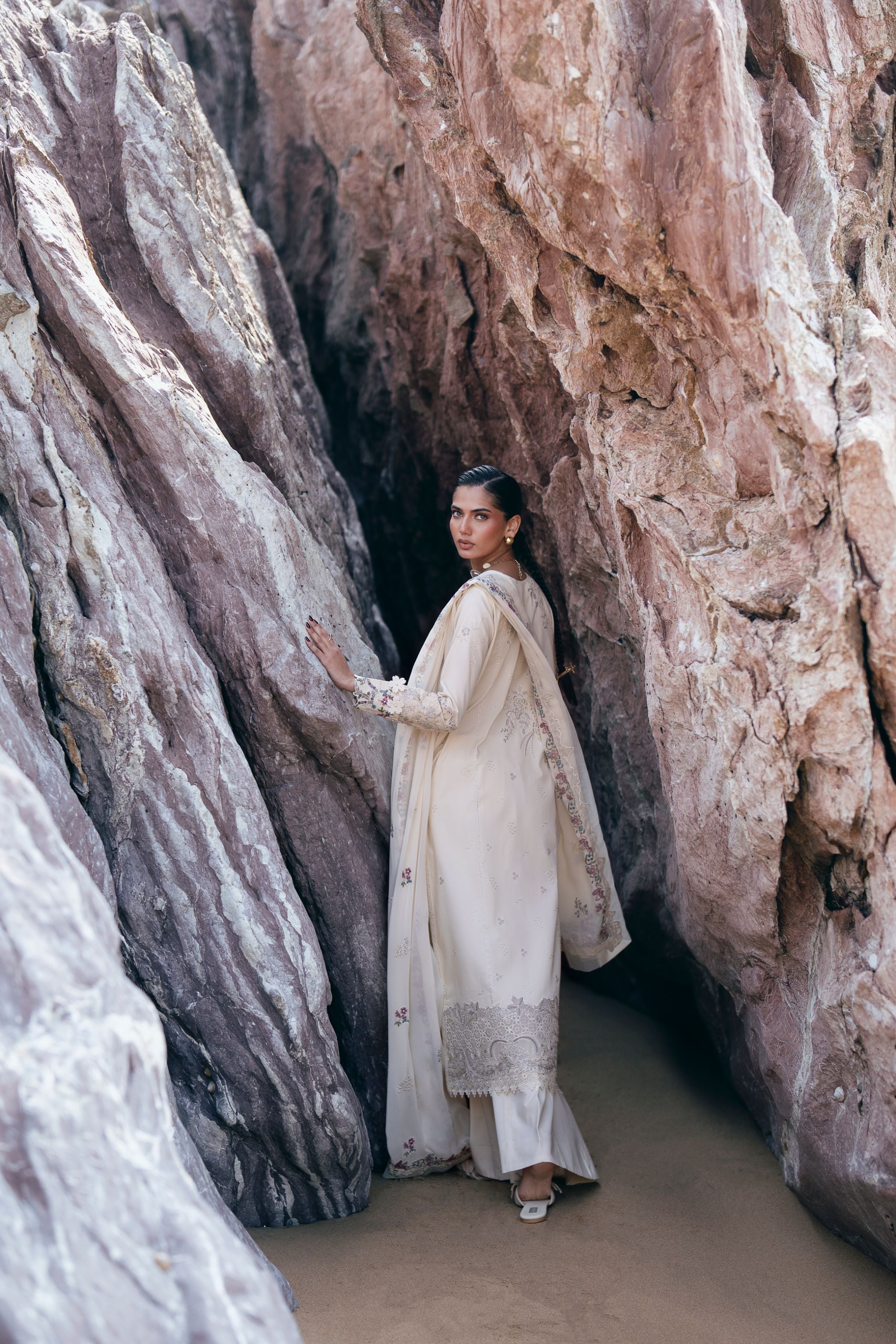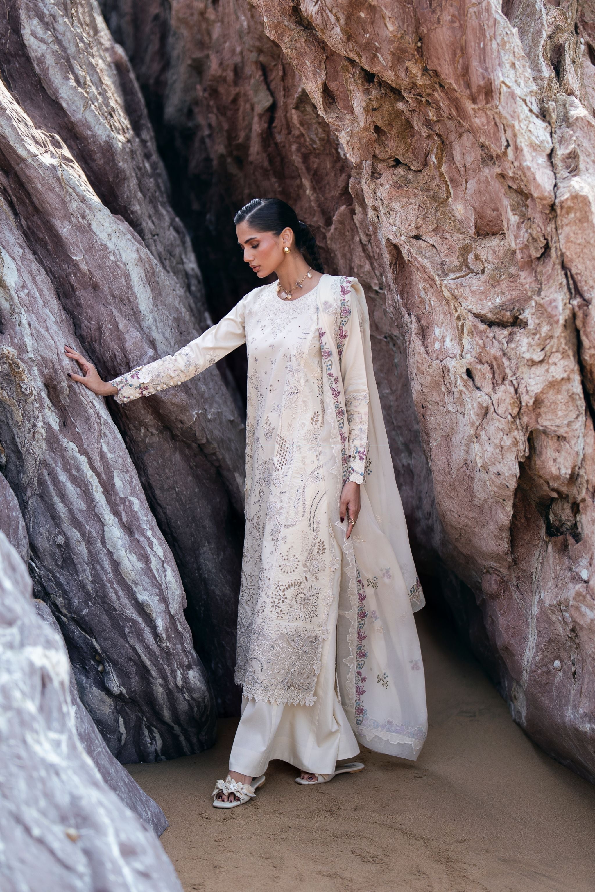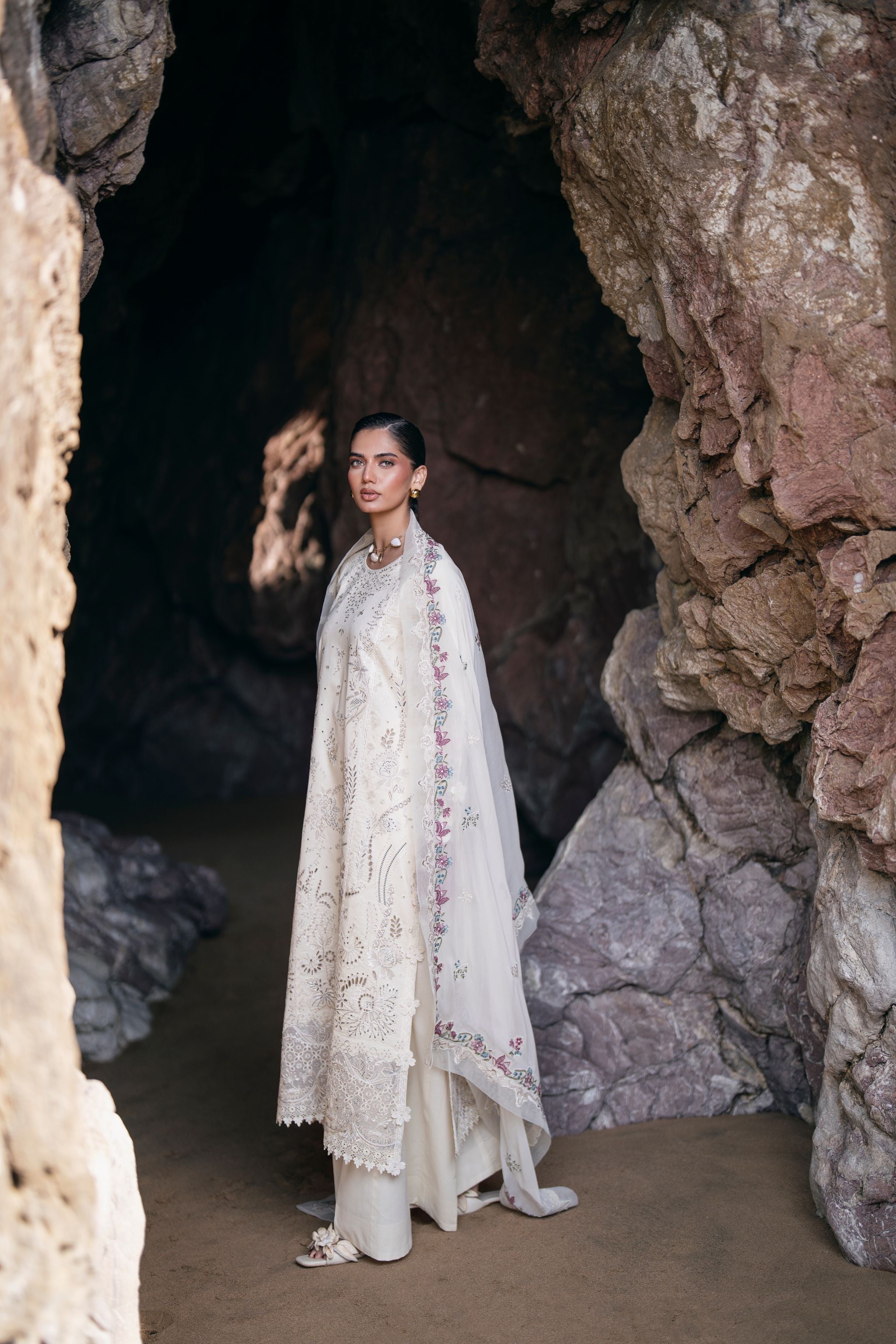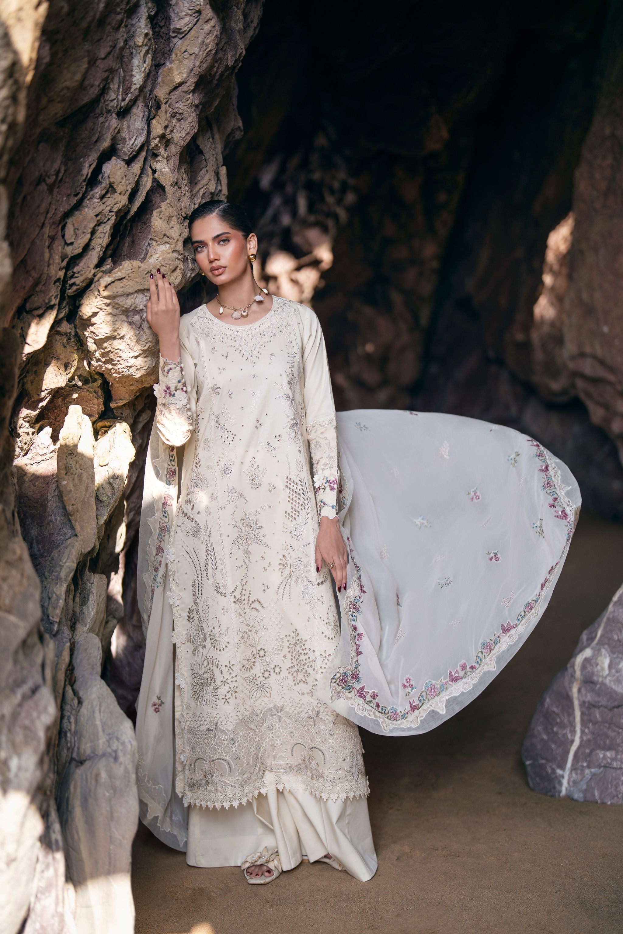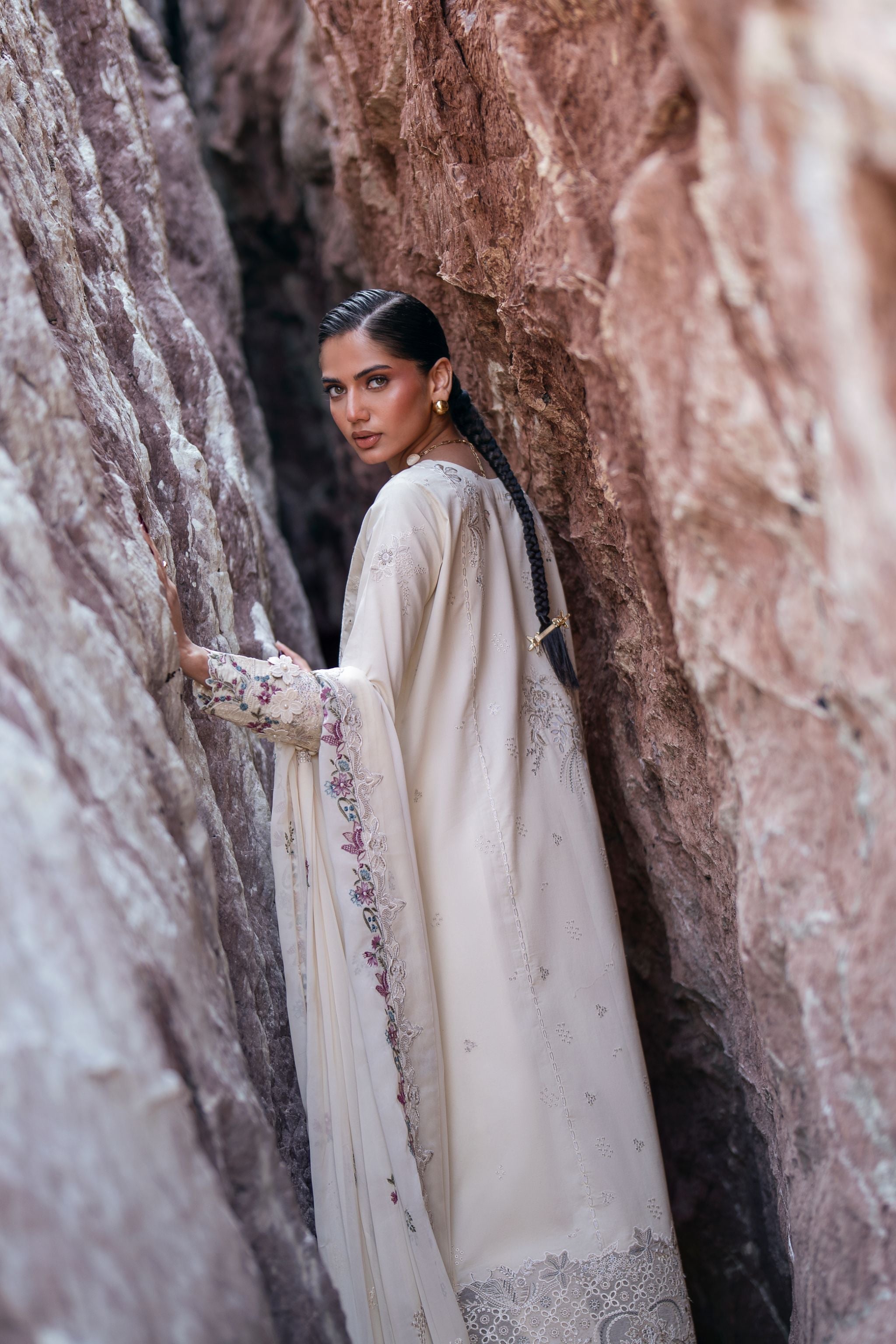 Summary: Embrace timeless elegance with this Off White Pakistani Suit from the Florent Festive Luxury Lawn collection. This unstitched dress is crafted from premium lawn, a breathable fabric perfect for spring and summer festivities. The kameez is a vision of sophistication, adorned with detailed embroidery across the front, back, and sleeves. Its serene Off White shade makes it a versatile choice for formal wear, ideal for Eid celebrations, Nikah ceremonies, or as a distinguished wedding guest outfit. This Pakistani Lawn Dress blends traditional craftsmanship with contemporary style, offering a graceful and comfortable ethnic wear option for any special occasion.