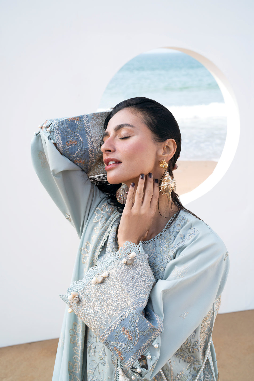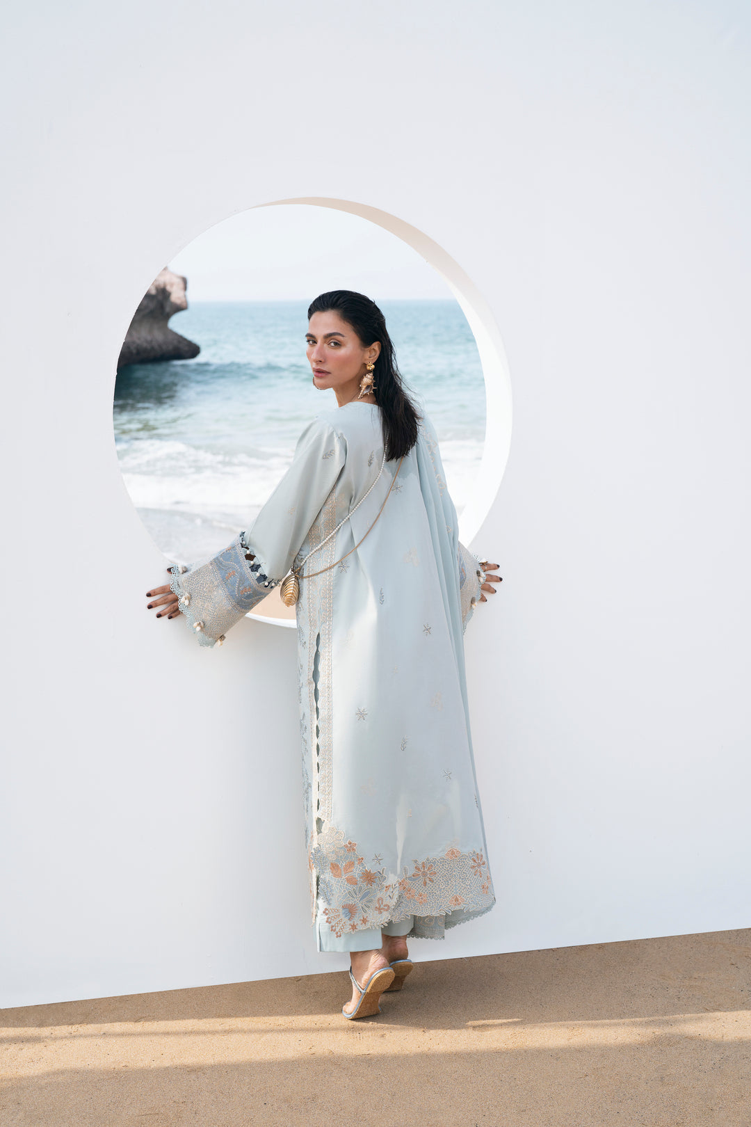 Summary: Embrace serene elegance with this stunning Blue Pakistani Suit from Florent's Festive Luxury Lawn collection. Crafted from premium Lawn, this unstitched dress is perfect for Spring/Summer, offering comfort and breathability. The kameez features exquisite embroidery on the front, back, and sleeves, enhanced by separate borders for the hem and slits. Paired with a beautifully dyed and embroidered Chiffon dupatta, this formal wear exudes sophistication. As a quintessential Pakistani Lawn dress, it's the ideal choice for Eid, weddings, or any festive celebration, making it a standout ethnic wear outfit.
