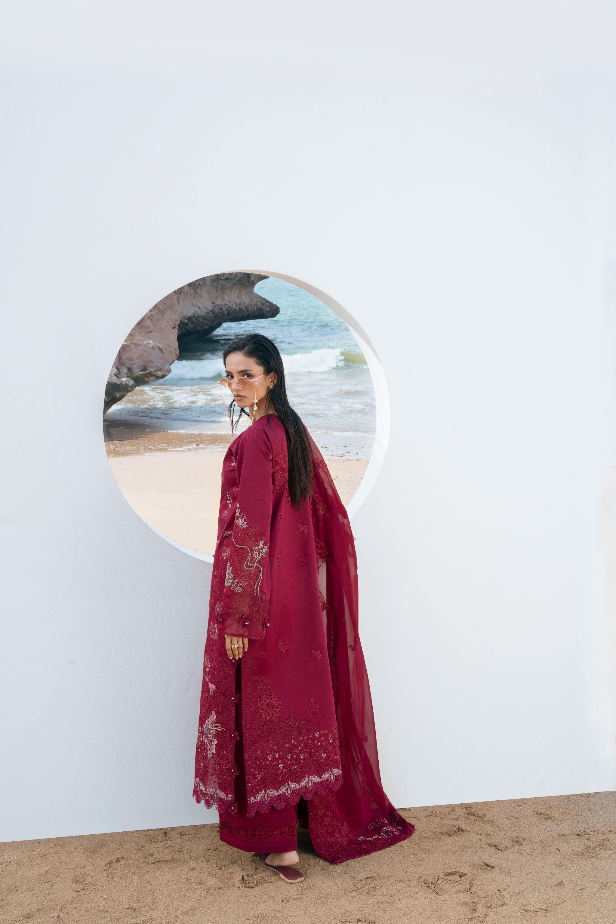 Summary: Step into sophistication with the Florent Festive Luxury Lawn suit, FLL-7A. This stunning Pakistani dress comes in a deep, elegant maroon hue, perfect for making a statement. Crafted from high-quality lawn fabric, it’s a breathable and comfortable choice for Spring/Summer festivities. The unstitched kameez is a canvas of exquisite artistry, featuring intricate embroidery on the front, back, and sleeves, complemented by detailed hem borders and lace. This formal wear piece, paired with an embroidered chiffon dupatta, is an ideal choice for Eid, weddings, or any grand celebration, offering a blend of tradition and contemporary grace.