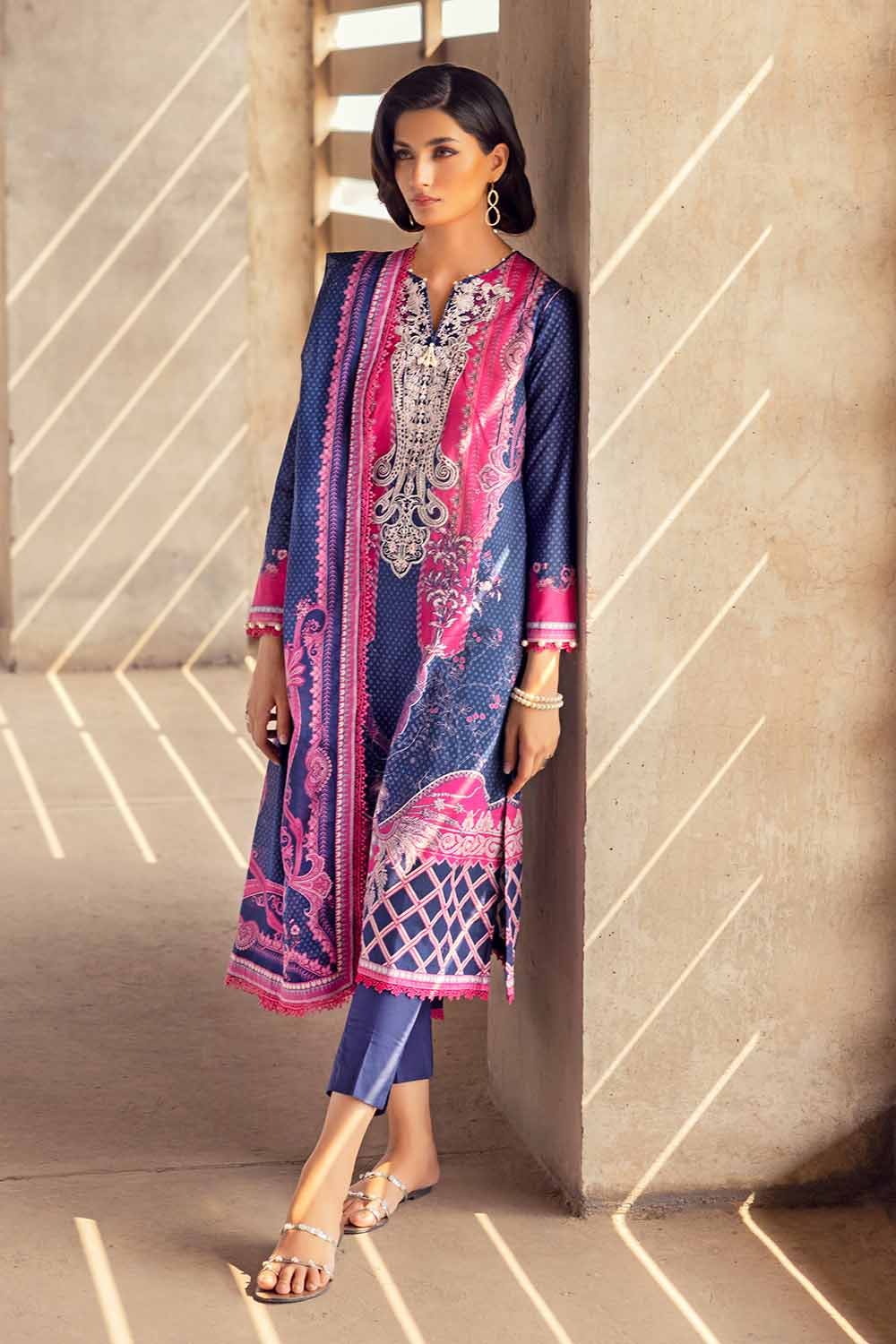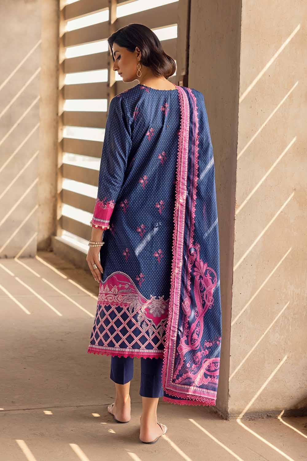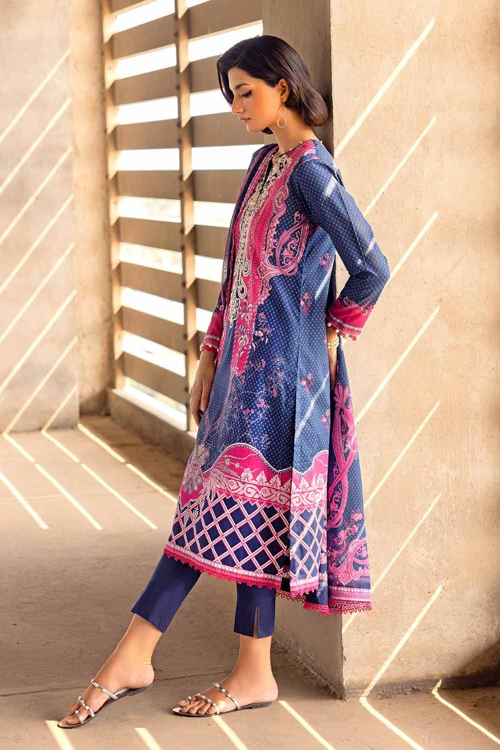 Fabric: Digital Printed Lawn Dupatta. -- 2.5 meters Digital Printed Cambric Shirt with Embroidered Neckline on organza. – 1.75 meters Dyed Trouser– 1.75 meters |