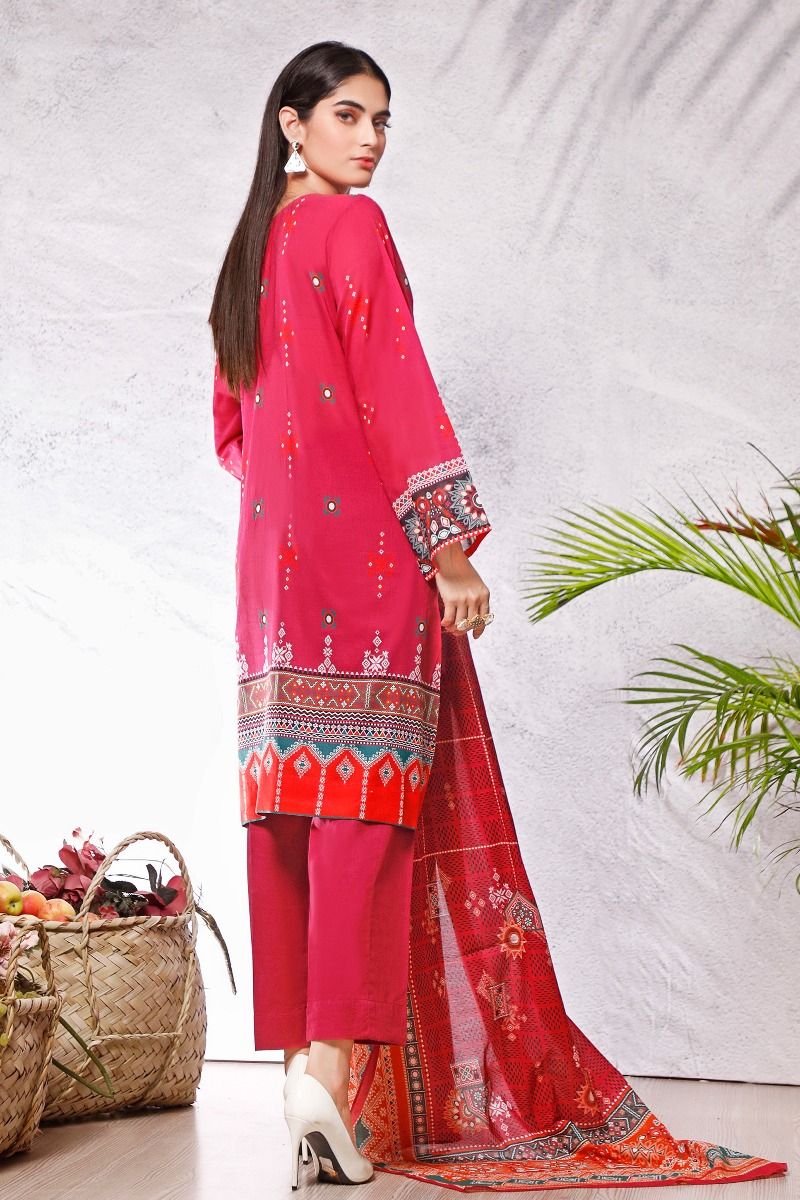 Fabric: Digital Printed Lawn Dupatta – 2.5 meters Digital Printed Lawn Shirt – 3 meters Dyed Lawn Trouser – 2.5 meters |