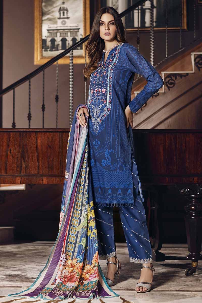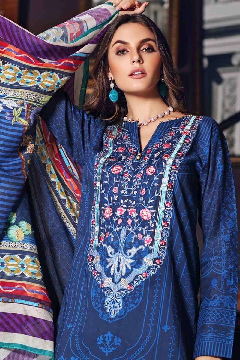 Fabric: Digital Printed Cotton Net Dupatta Printed Shirt with Embroidered Neckline Dyed Embroidered Bottom |