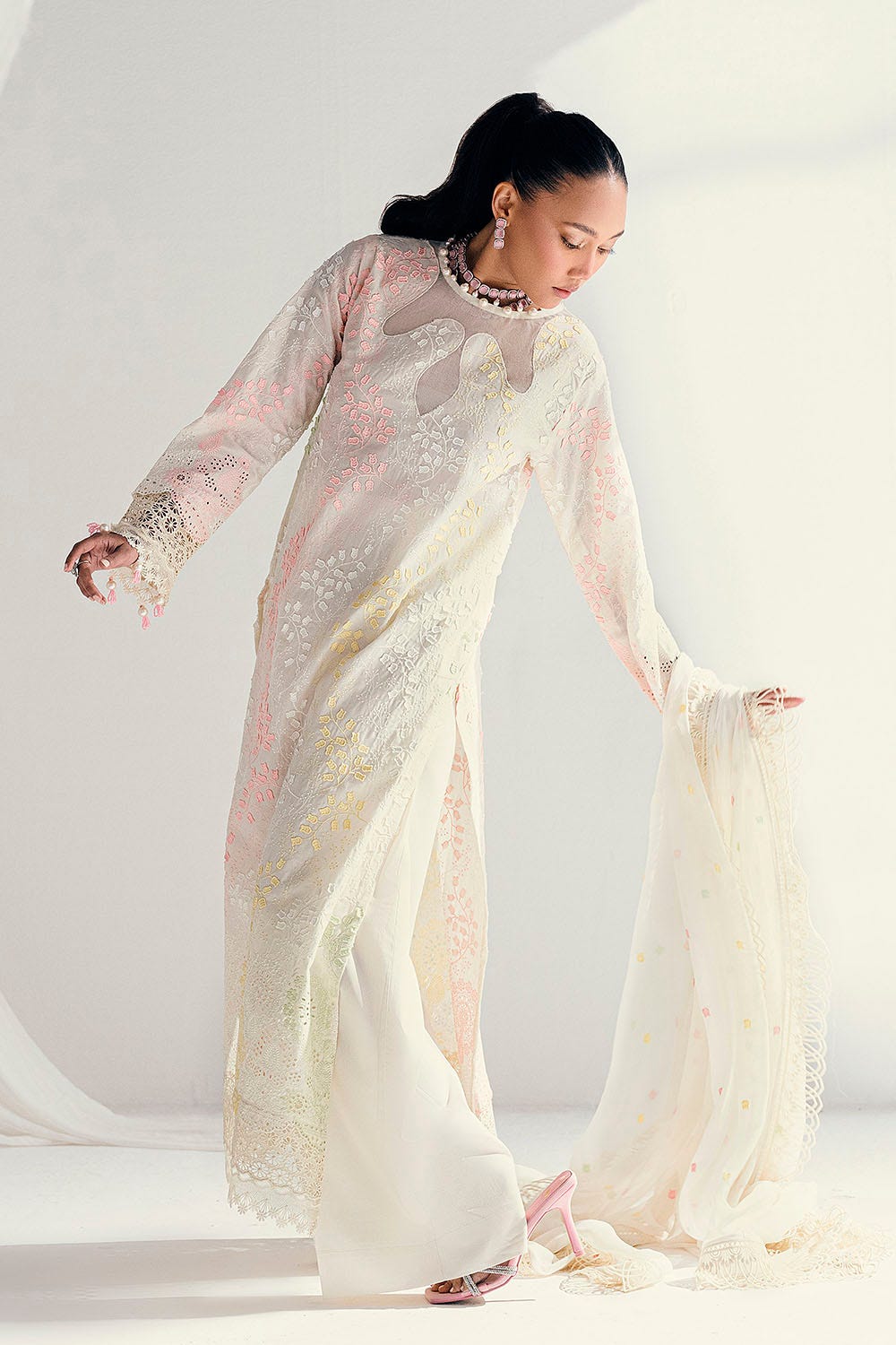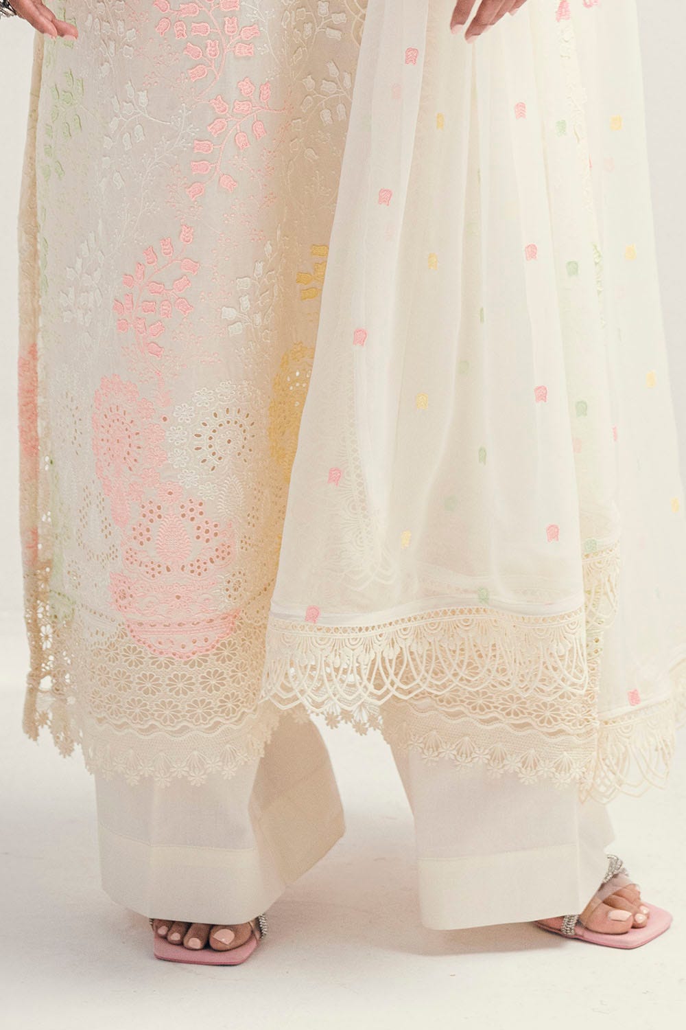 Fabric: Embroidered Chiffon Dupatta - 2.5 Meters Schiffli Embroidered Lawn Shirt Front & Sleeves with Dyed Lawn Back - 2.28 Meters Dyed Trouser - 1.75 Meters Embroidered Chiffon Dupatta - 2.5 Meters Schiffli Embroidered Lawn Shirt Front & Sleeves with Dyed Lawn Back - 2.28 Meters Dyed Trouser - 1.75 Meters SKU: W-FB-CKN-25-425186 Color: White |