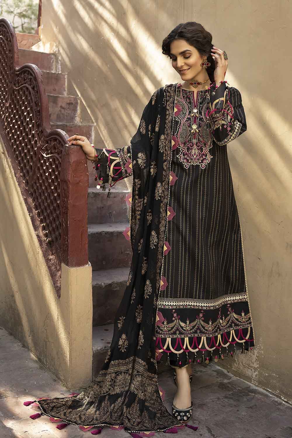 Fabric: Gold & Lacquer Printed Chiffon Dupatta- 2.5 meters Gold & Lacquer Printed Shirt with Embroidered Neckline & Border- 3 meters Dyed Trouser- 1.75 meters |
