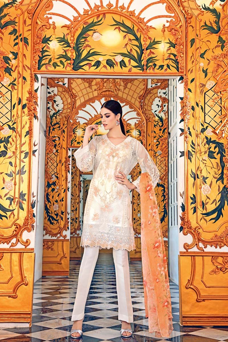 Fabric: Printed Blended Chiffon Dupatta – 2.5 meters Embroidered Organza Shirt – 1.7 meters Dyed Inner – 1.5 meters Embroidered Lace – 1 meter Dyed Bottom – 1.5 meters |