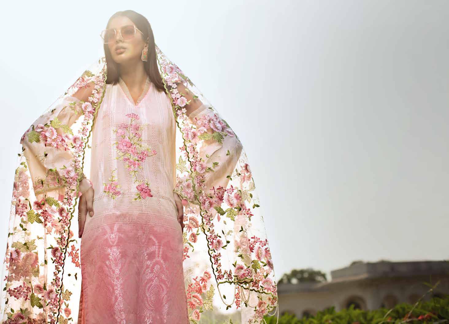 Fabric: Embroidered Net Dupatta Yarn Dyed Jacquard Shirt With Embroidered Front Embroidered Border For Sleeves Dyed Bottom |