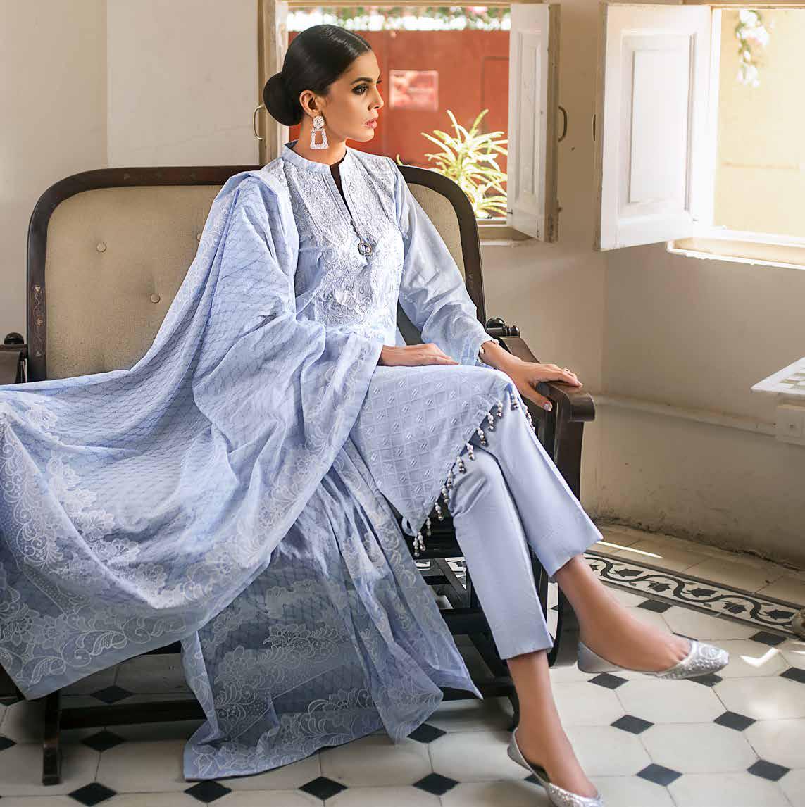 Fabric: Lacquer Printed Dupatta Dyed Embroidered Front, Lacquer Printed Back & Sleeves Dyed Bottom |
