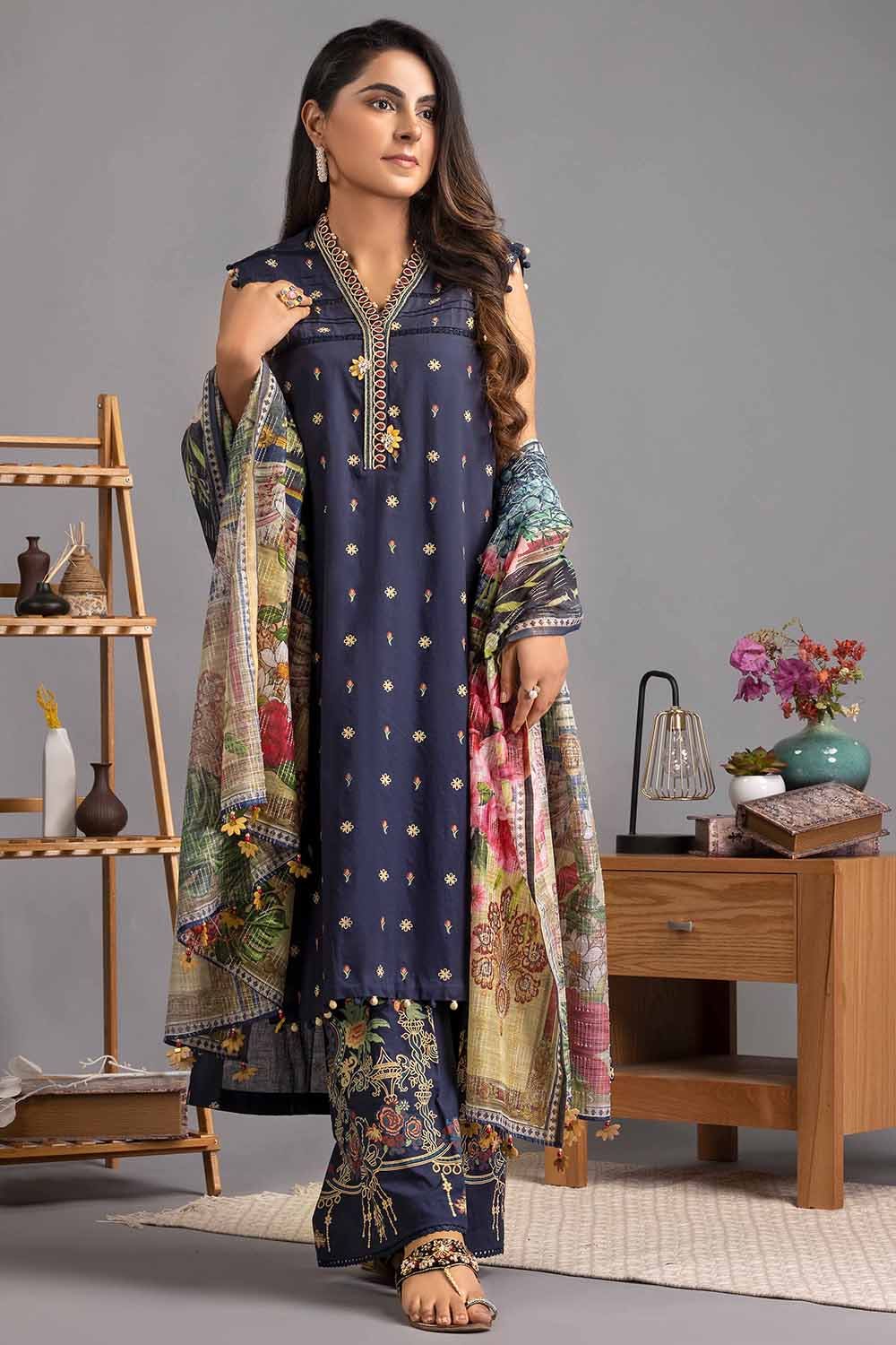 Fabric: Digital Printed Dobby Dupatta – 2.5 meters Lacquer Printed Shirt with Embroidered Lace for Neckline on Organza – 1.75 meters Lacquer Printed Trouser – 1.75 meters |