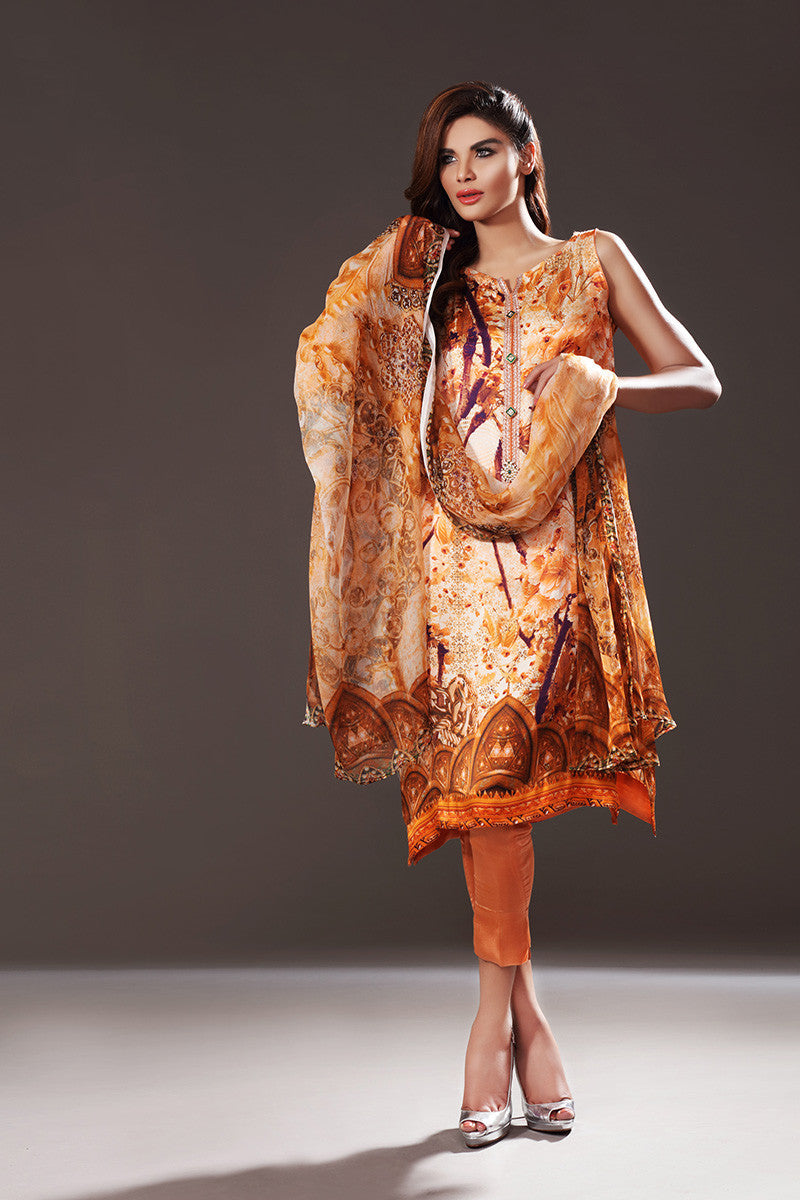 | Description | A royally aesthetic pattern designed predominantly in shades of peach and gold with hints darker shades, sits as the centerpiece of this black dress as a host of intertwined Persian motifs complete the imperial theme of Gul Ahmed’s signature Lamis Digital Silk Collection. |
