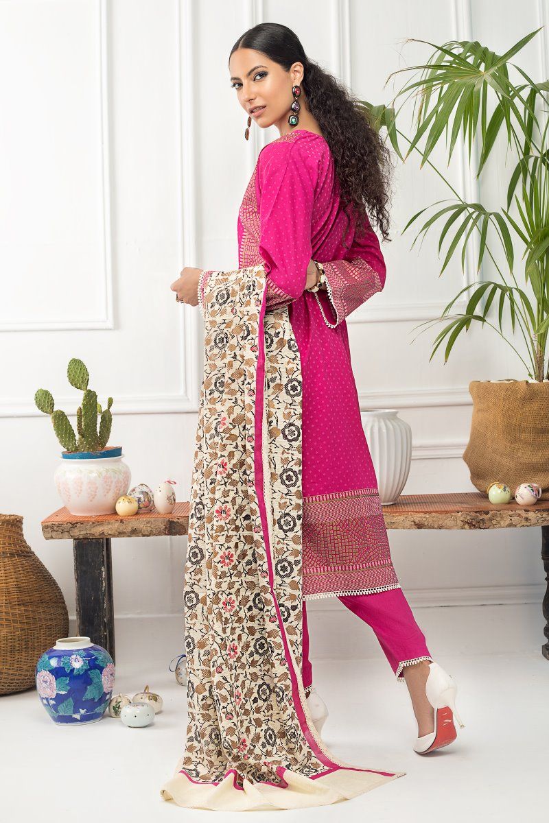 Fabric: Gold & Lacquer Printed Lawn Dupatta – 2.5 meters Lacquer Printed Cambric Shirt with Embroidered Neckline on Organza – 1.75 meters Dyed Cambric Trouser – 2.5 meters |