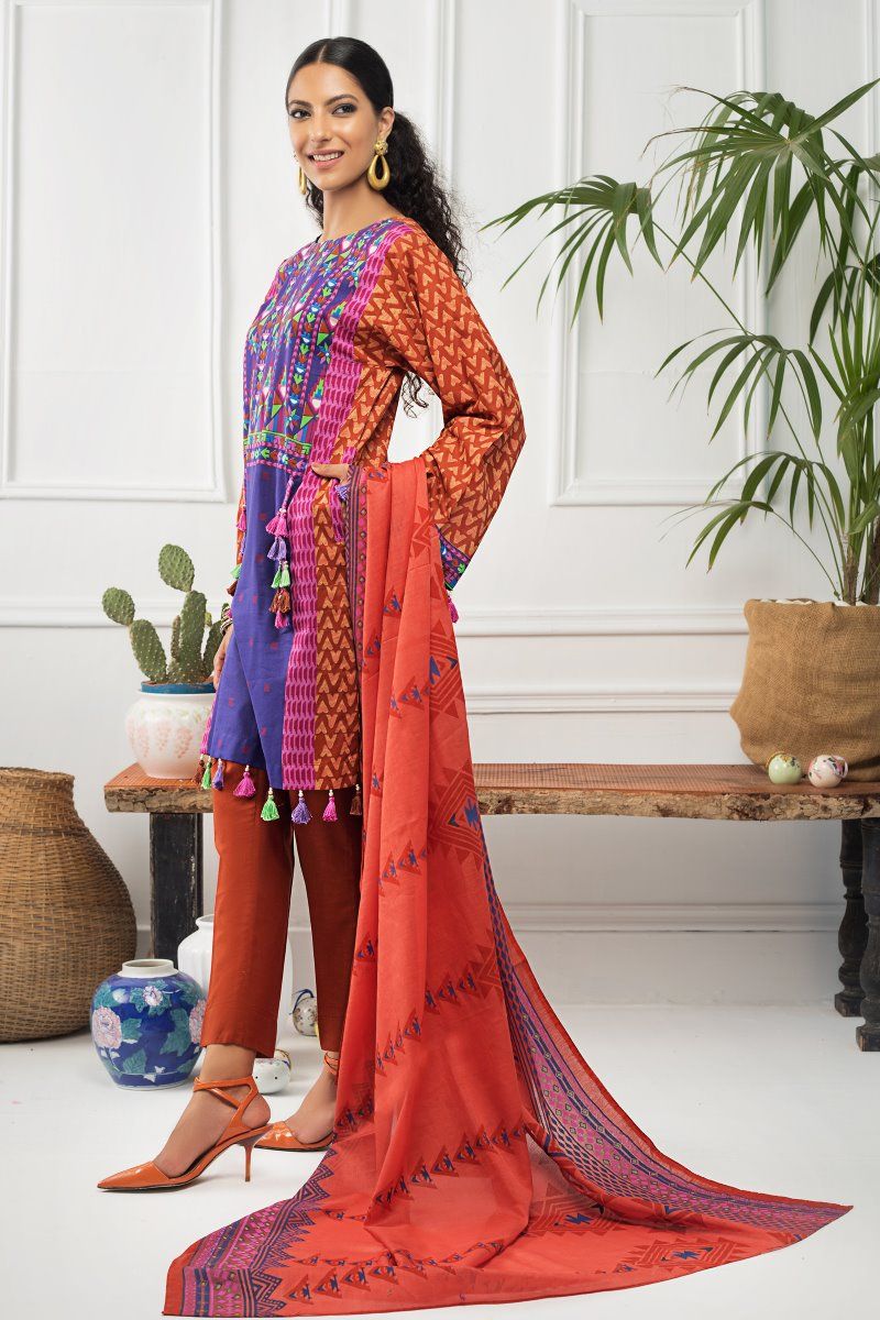 Fabric: Lacquer Printed Lawn Dupatta – 2.5 meters Silver Printed Cambric Shirt – 1.75 meters Dyed Cambric Trouser – 2.5 meters |