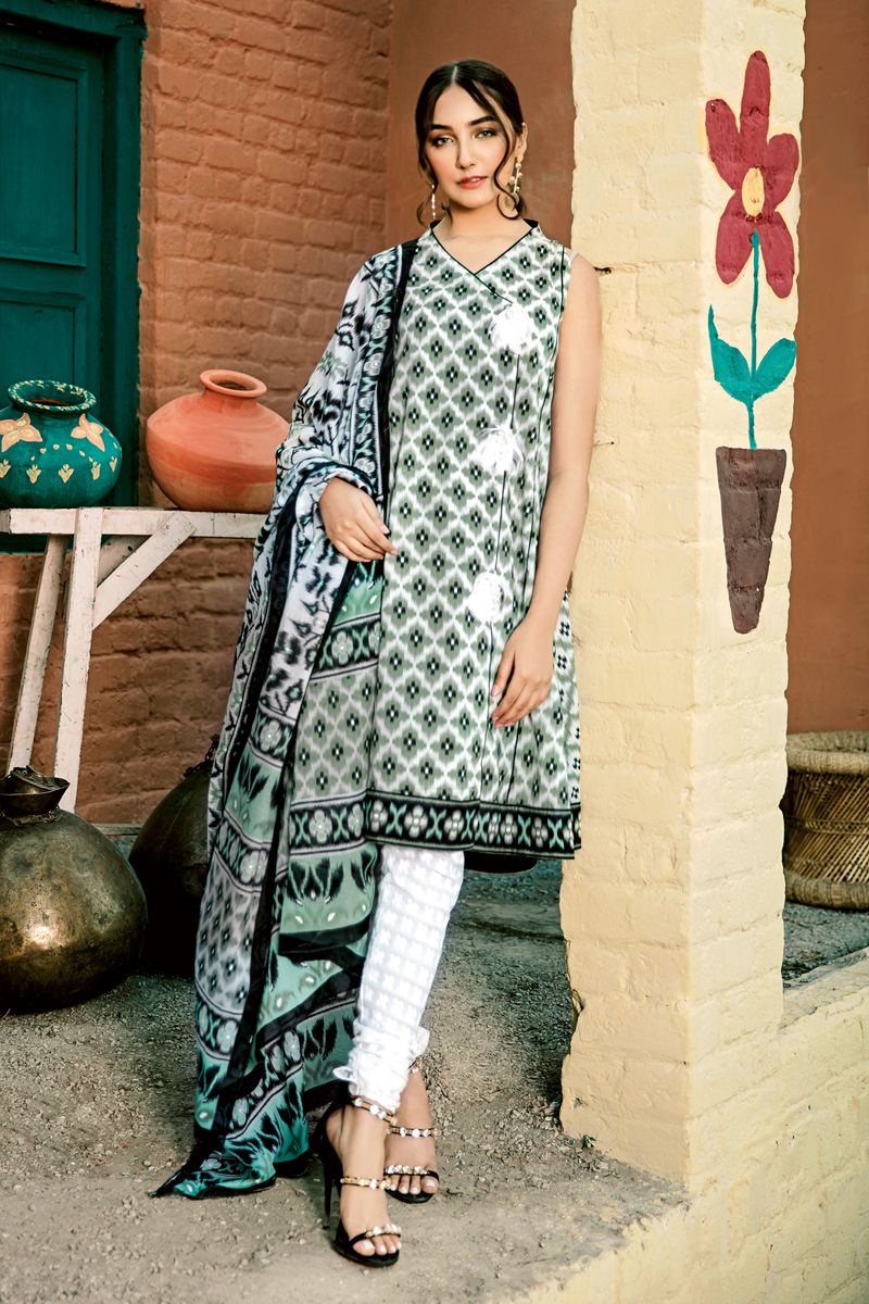 Fabric: Printed Lawn Dupatta - 2.5 Meters Printed Lawn Shirt - 1.75 Meters Lacquer Printed Trouser - 1.75 Meters |