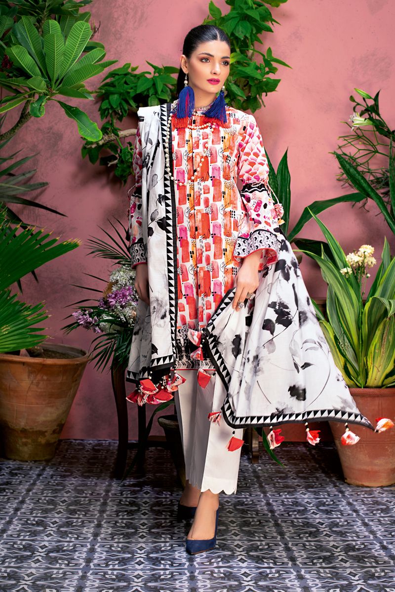 Fabric: Digital Printed Lawn Dupatta - 2.5 Meters Digital Printed Lawn Shirt - 1.75 Meters Dyed Trouser - 1.75 Meters |