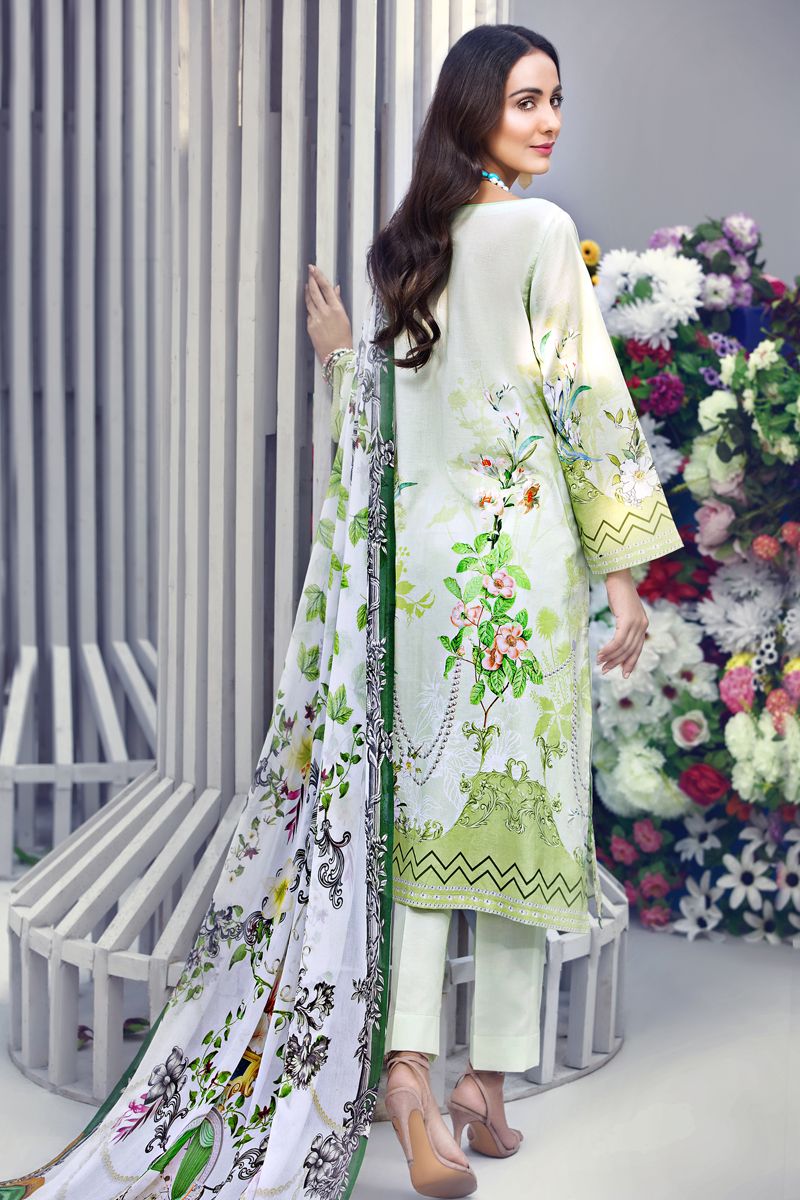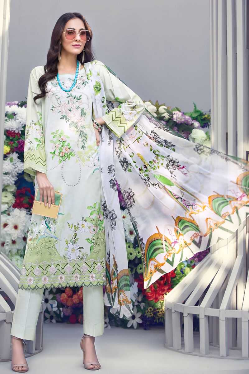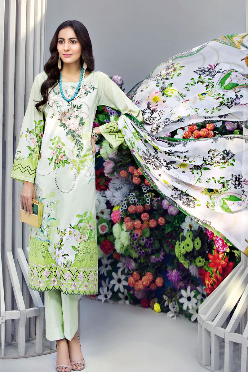 Fabric: Digital Printed Chiffon Dupatta – 2.5 meters Digital Printed Shirt – 1.75 meters Dyed Trouser – 1.75 meters Embroidered Neckline & Border |