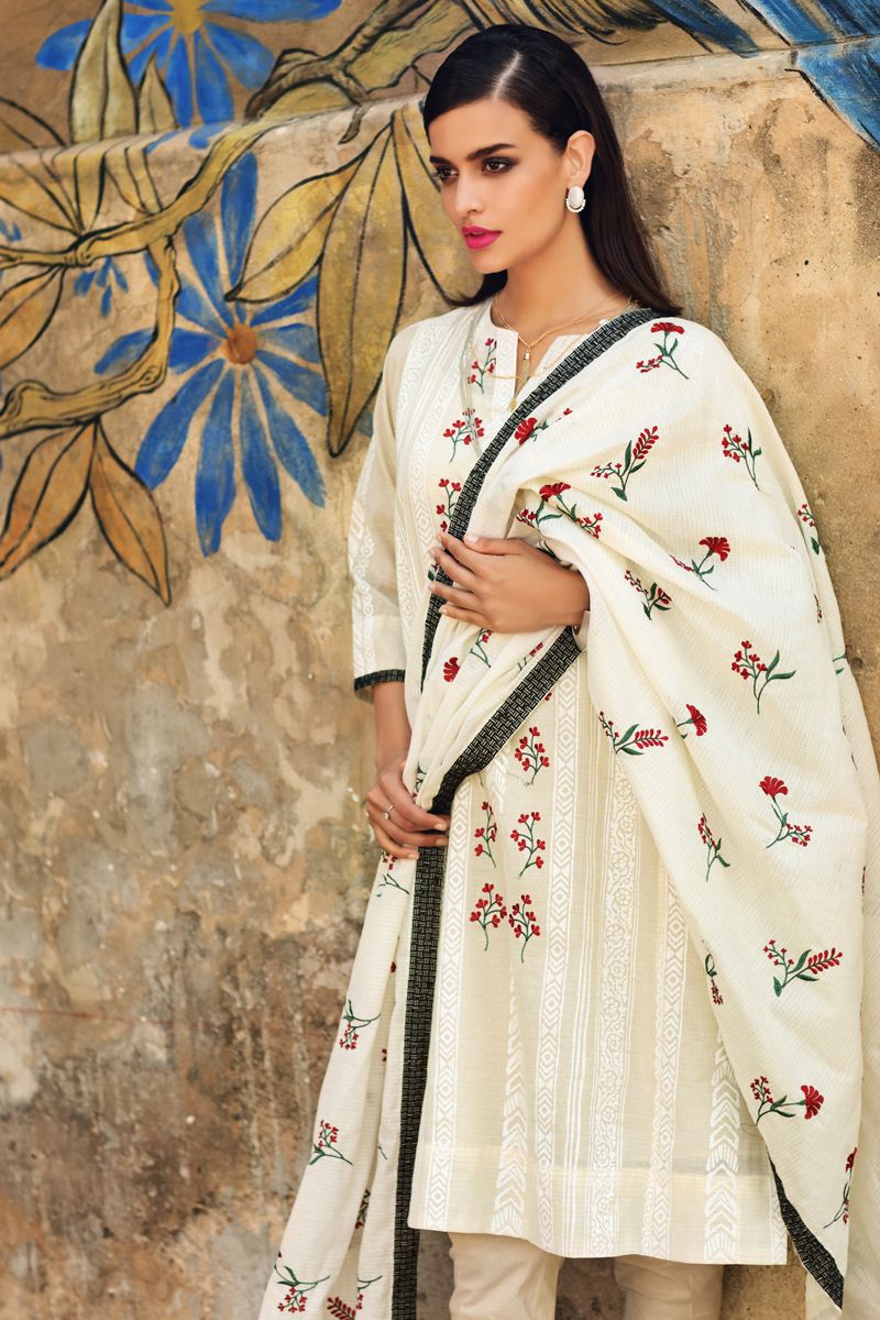 Fabric: 3 PC Embroidered Lawn Suit with Cotton Karandi Dupatta PM-309 |