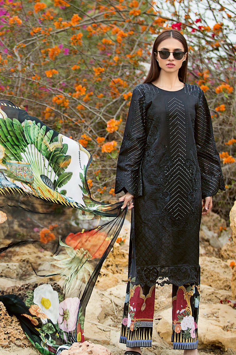 Fabric: Digital Printed Silk Dupatta - 2.5 meters Sequin Embroidered Front & Sleeves – 1.85 meters Printed Back – 0.6 meters Digital Printed Trouser – 1.75 meters Embroidered Lace |