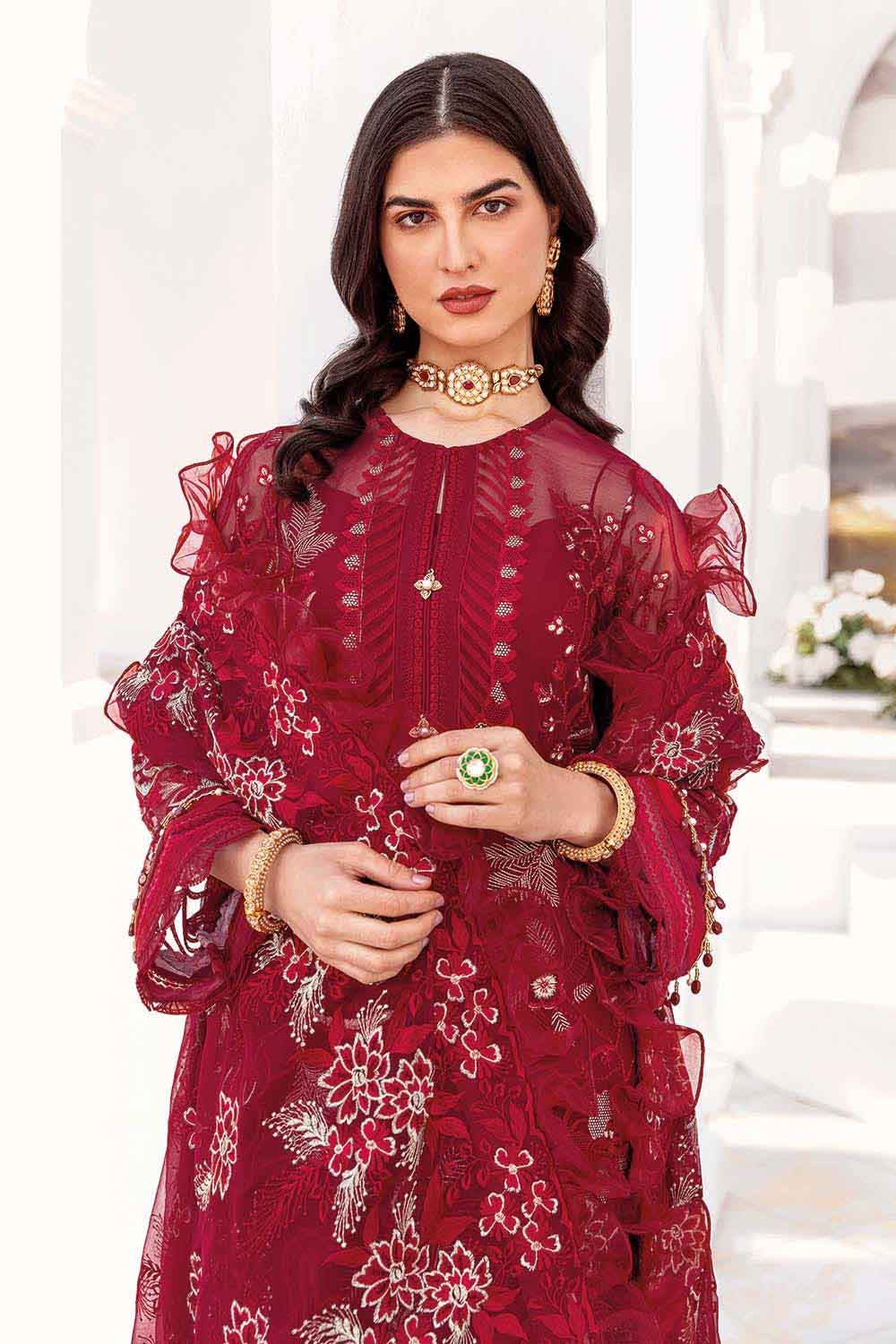Fabric: Embroidered Chiffon Dupatta - 2.5 Meters Sequins Embroidered Chiffon Front with Sleeves – 4.09 Meters Dyed Trouser - 1.75 Meters. Embroidered Chiffon Front Side Panels, Back & Embroidered Border for Front, Back & Sleeves On Organza |