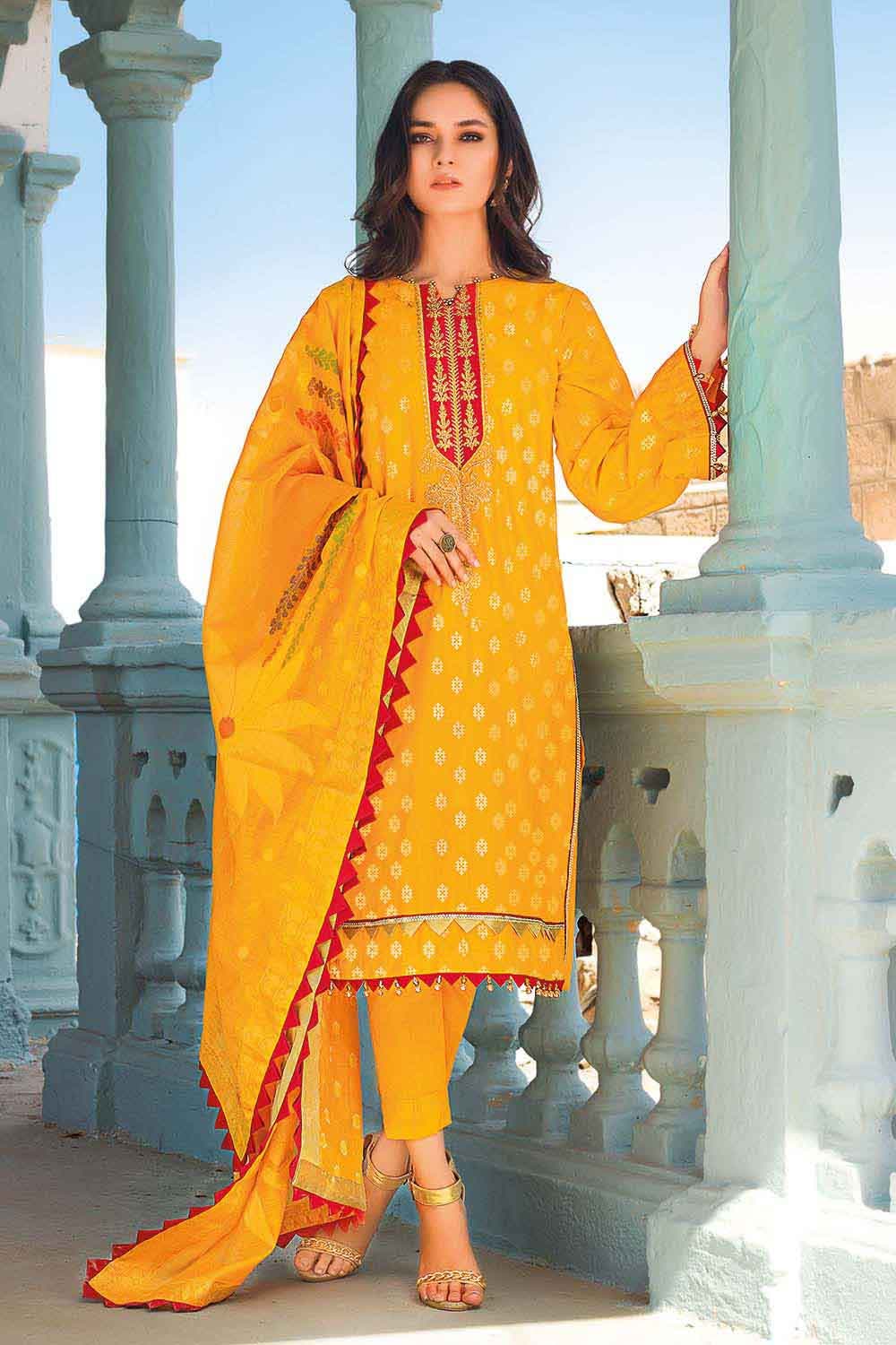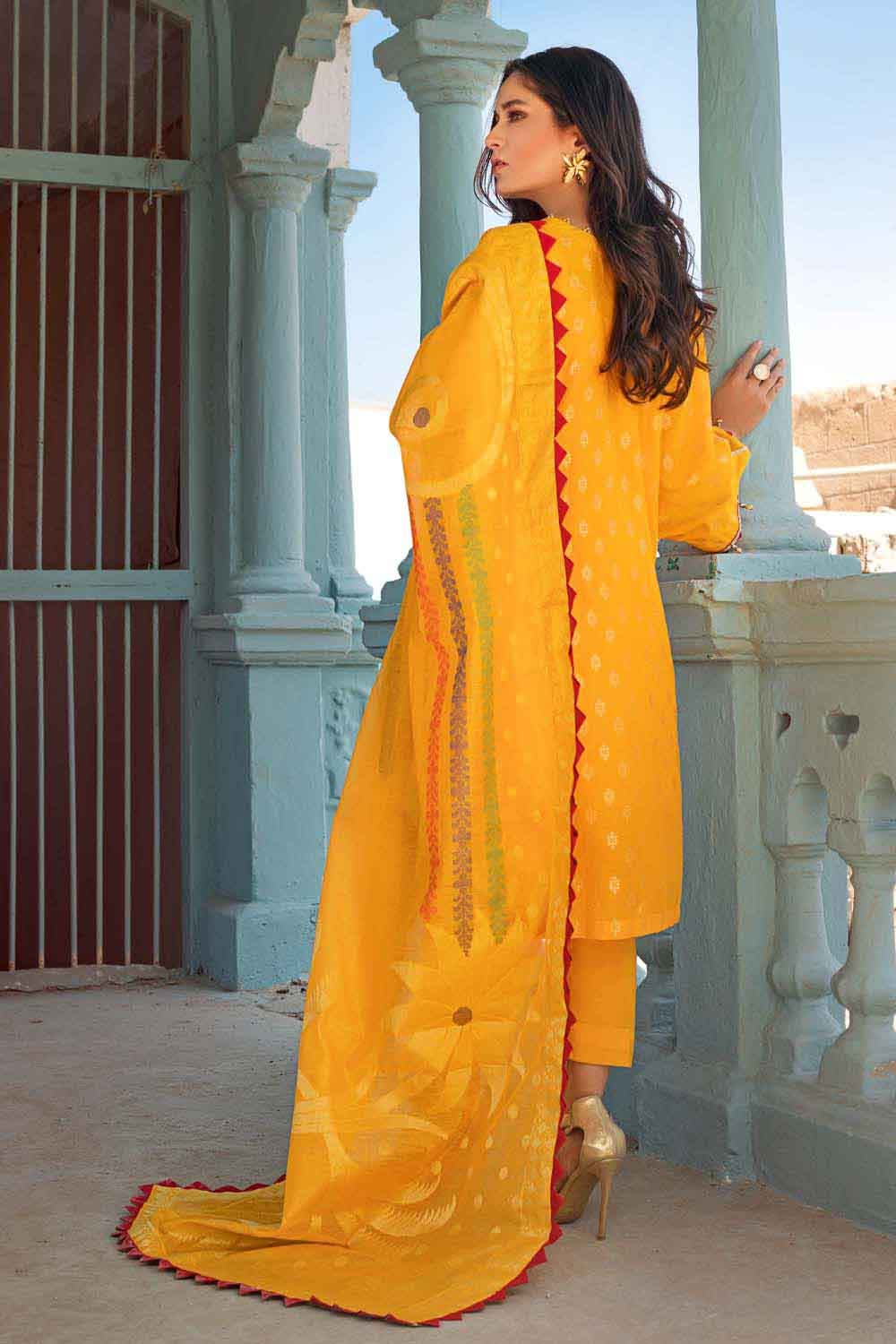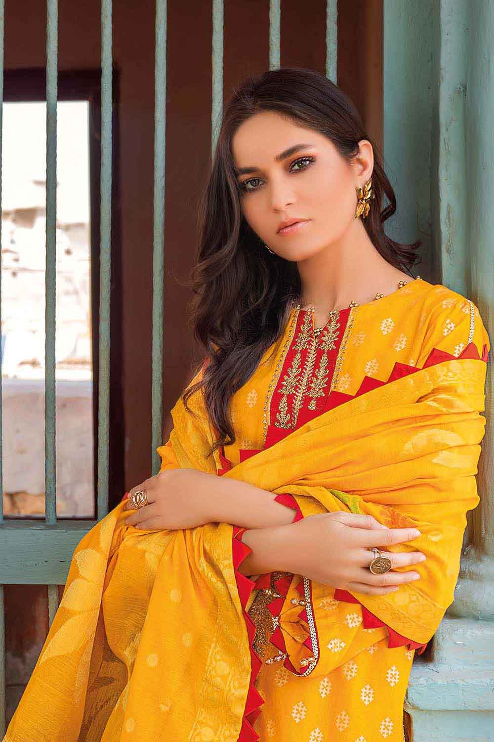 Fabric: Yarn Dyed Jacquard Dupatta - 2.5 Meters Embroidered Glitter Printed Lawn Shirt With Glitter Printed Back & Sleeves – 3 Meters Dyed Trouser - 1.75 Meters |