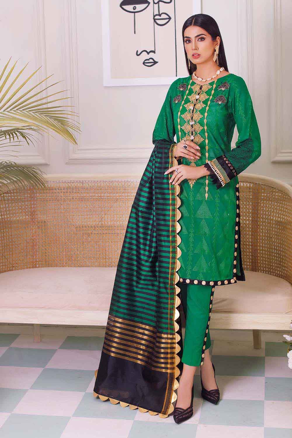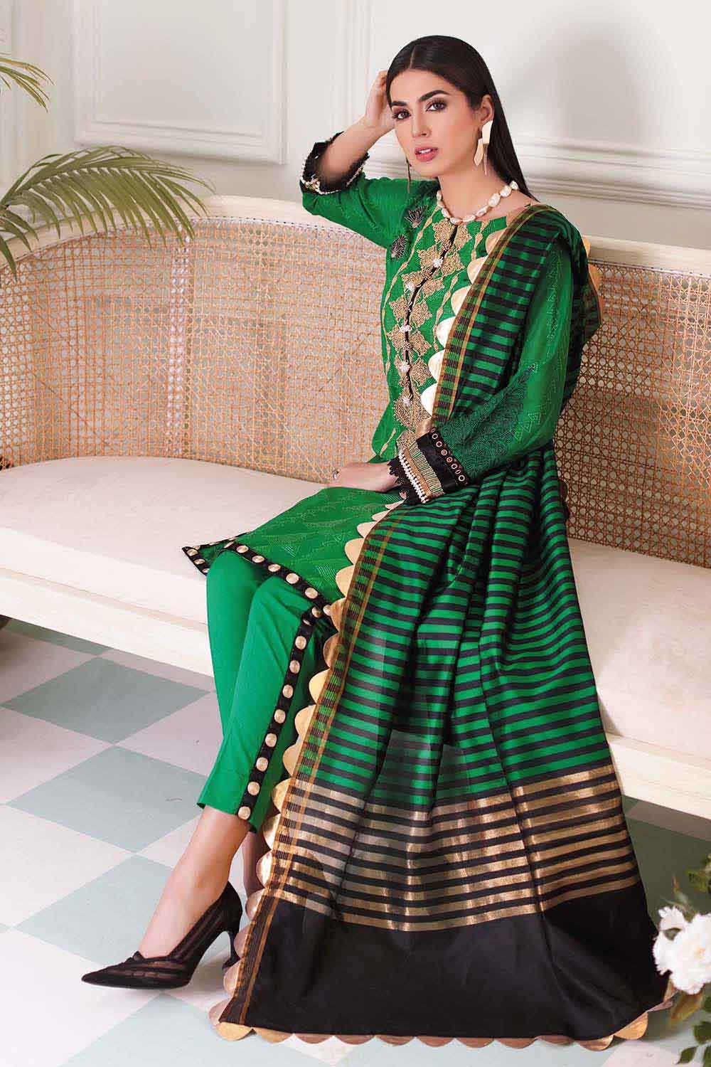 Fabric: Jacquard Dupatta - 2.5 Meters Embroidered Lawn Front & Sleeves with Dyed Lawn Back – 3.15 Meters Dyed Trouser - 1.75 Meters |