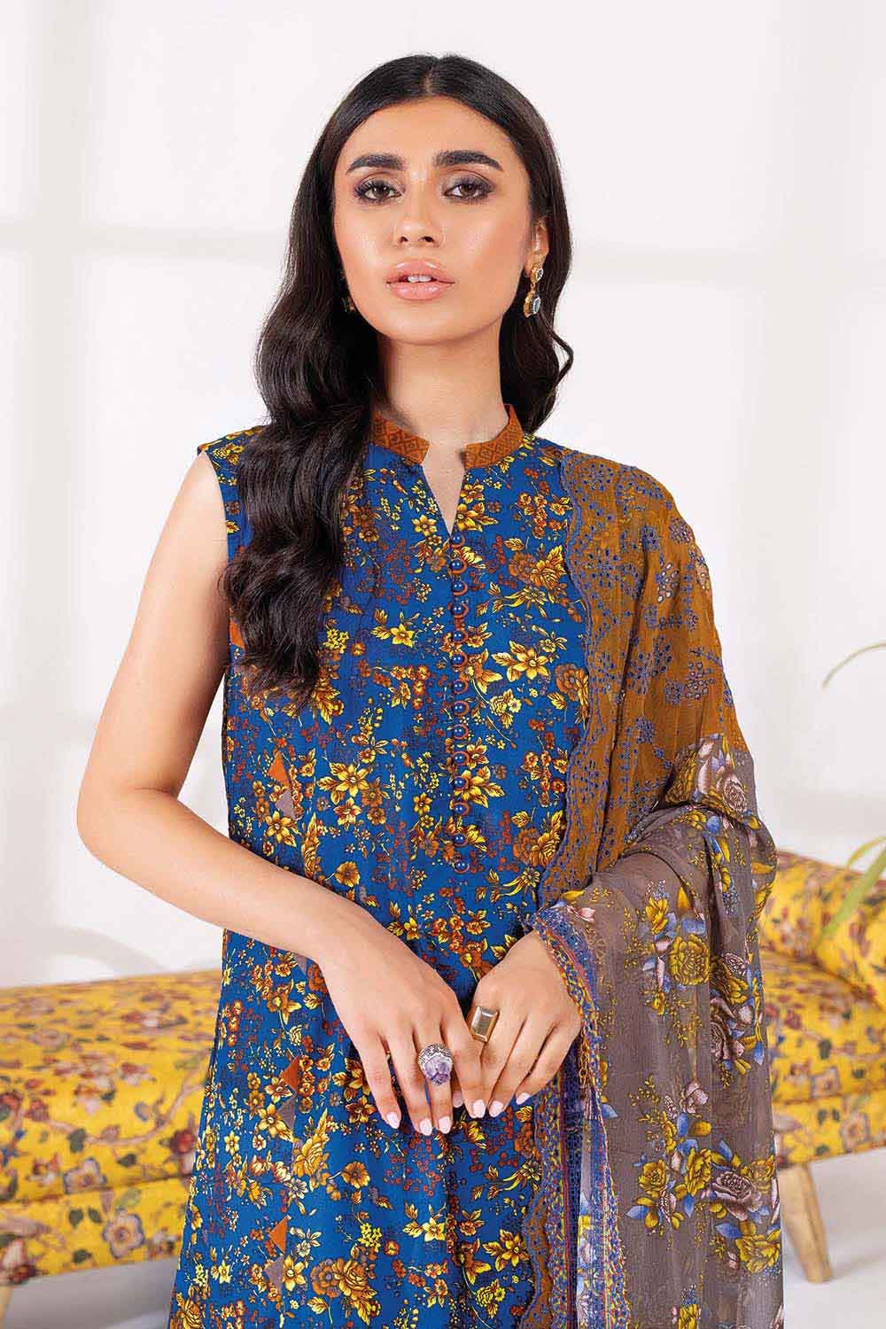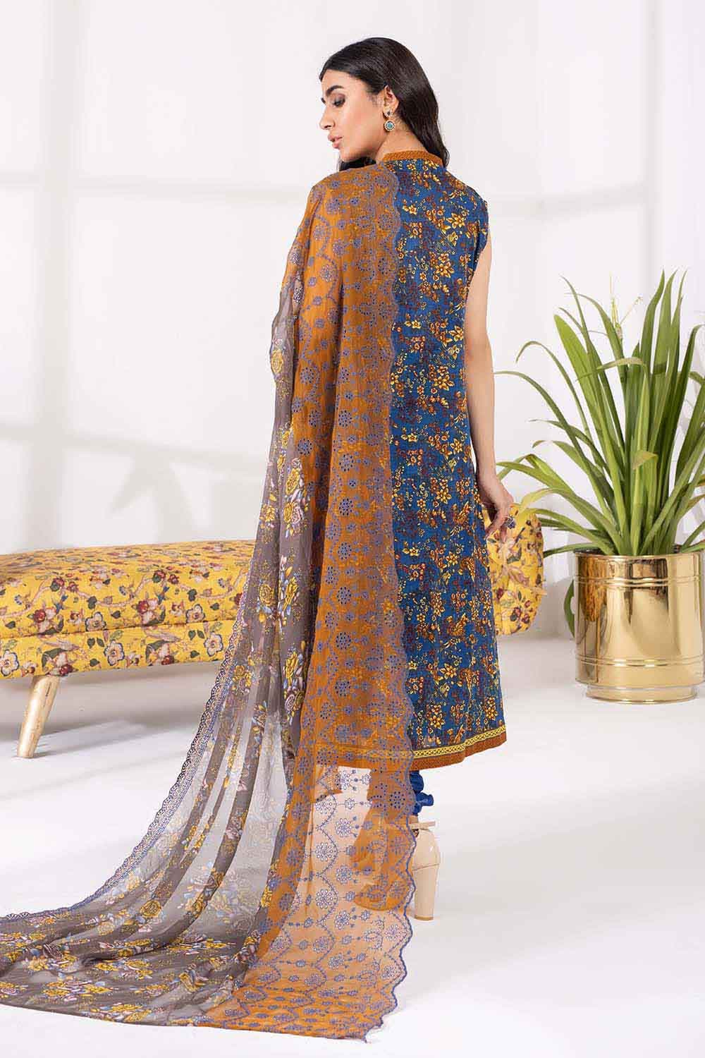 Fabric: Schiffli Embroidered & Printed Chiffon Dupatta - 2.5 Meters Printed Lawn Shirt - 3 Meters Dyed Lawn Trouser - 1.75 Meters. |
