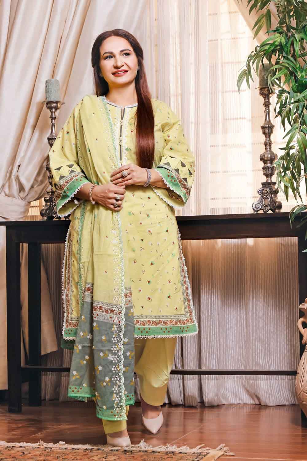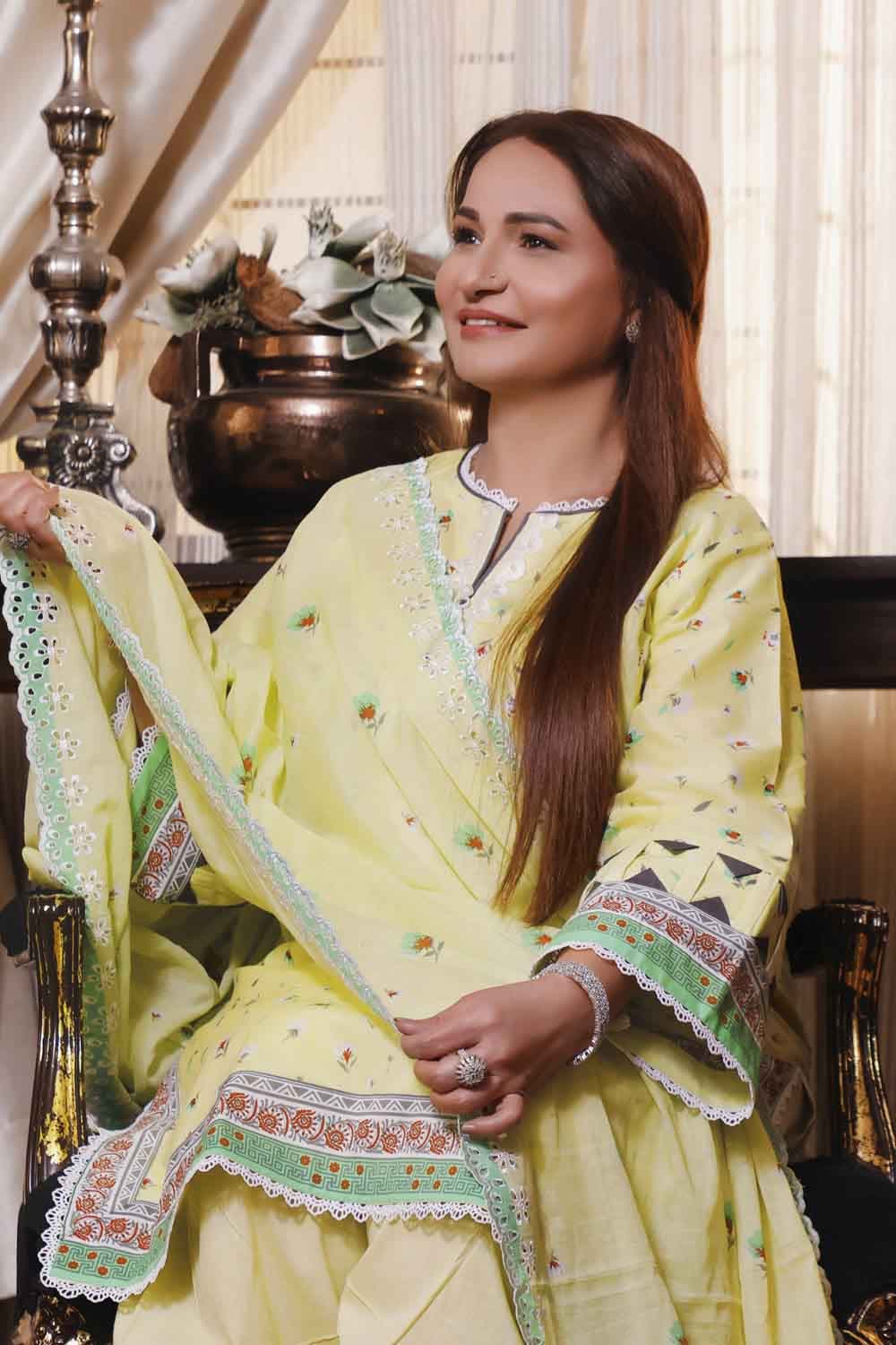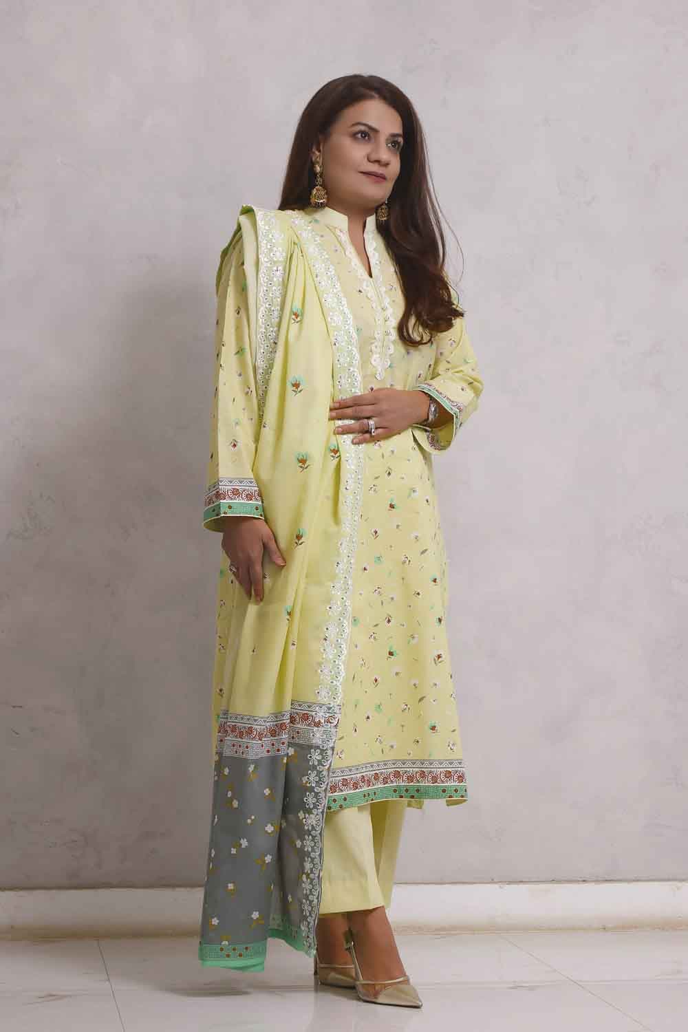 Fabric: Embroidered Printed Lawn Dupatta - 2.5 Meters Printed Lawn Shirt with Embroidered Neckline – 1.75 Meters Dyed Trouser – 1.75 Meters |
