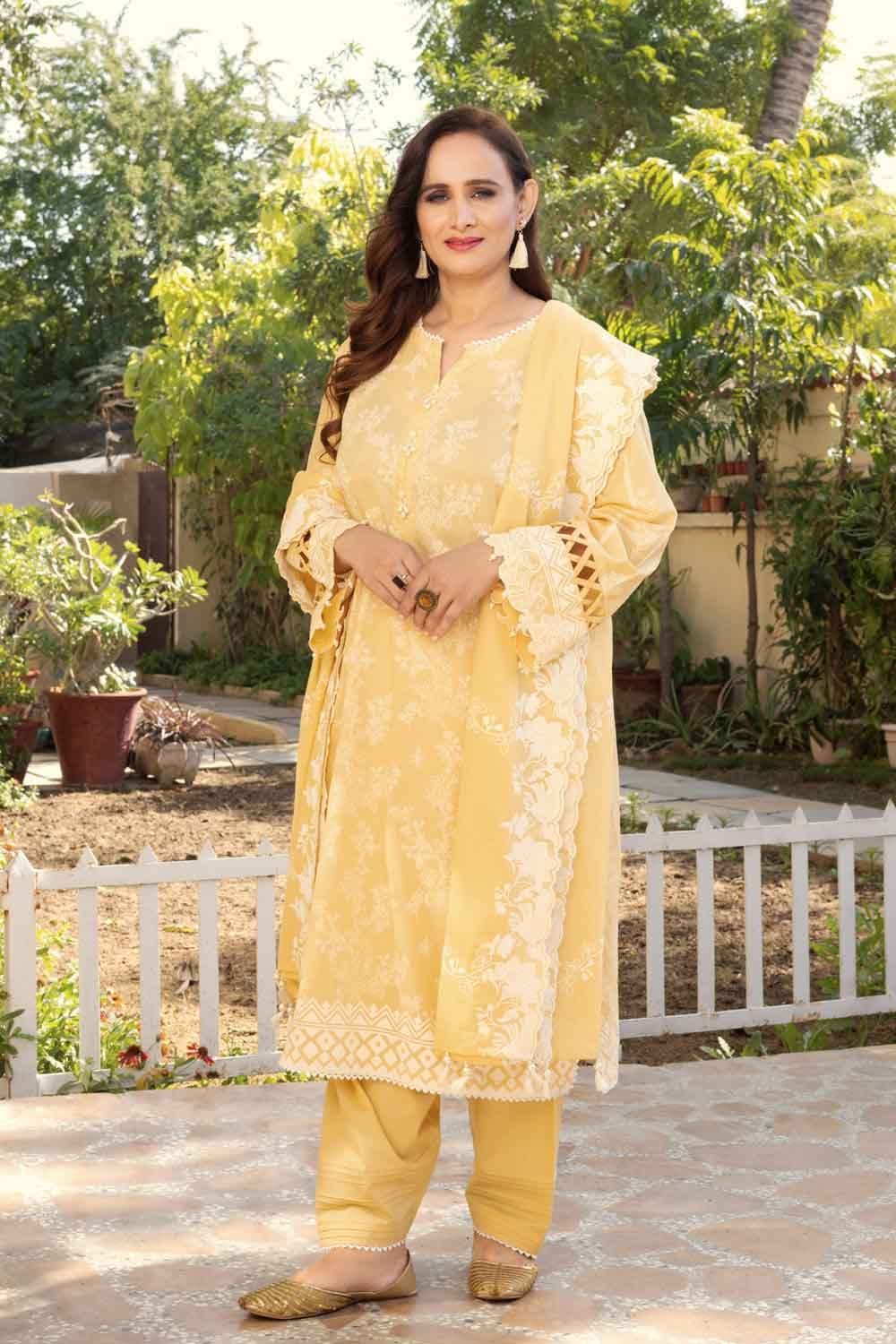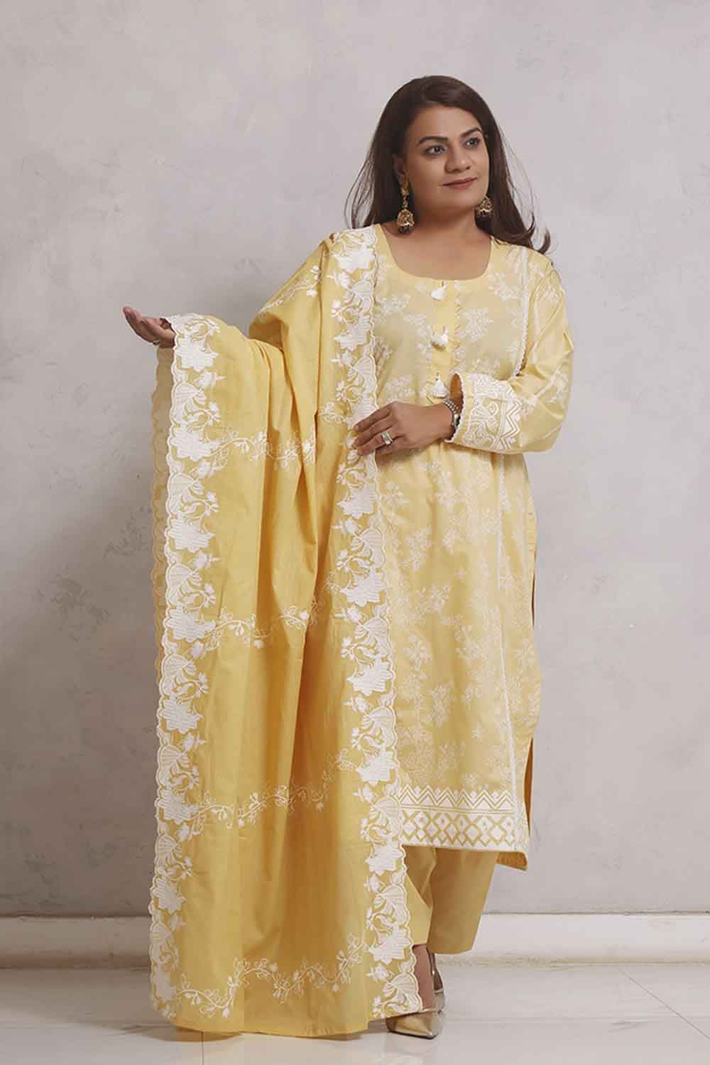 Fabric: Embroidered Denting Lawn Dupatta – 2.5 Meters Lacquer Printed Lawn Shirt – 1.75 Meters Dyed Trouser – 1.75 Meters Embroidered Neckline |