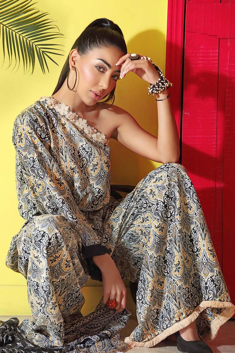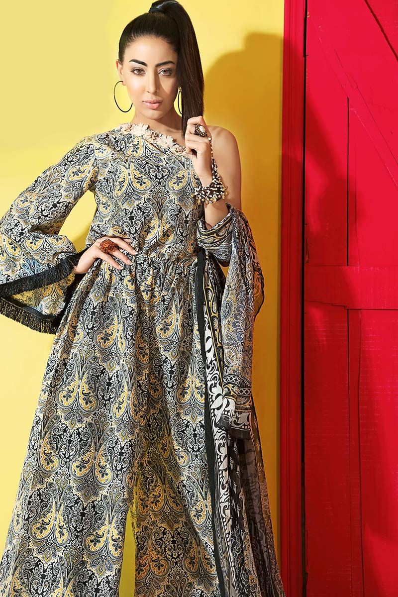 Fabric: Buttons Silk Printed Shirt – 2.5 meters Blended Chiffon Dupatta – 2.5 meters Dyed Bottom – 1.5 meters |