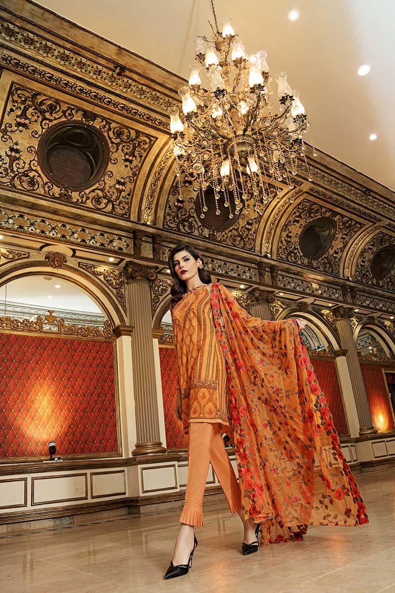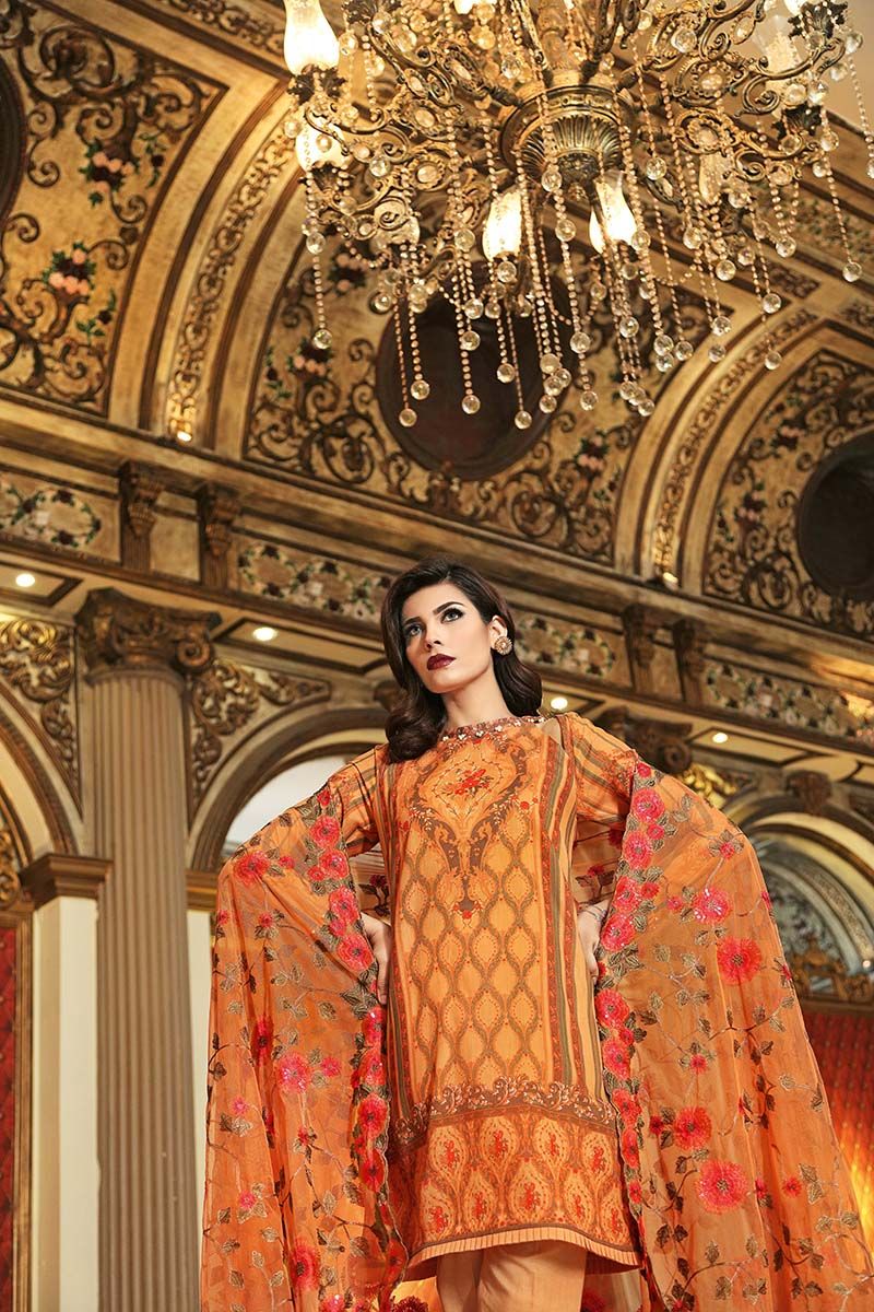 Fabric: Embroidered Net Dupatta with Sequins - 2.5 meters Printed Shirt - 1.75 meters Dyed Bottom - 1.5 meters |