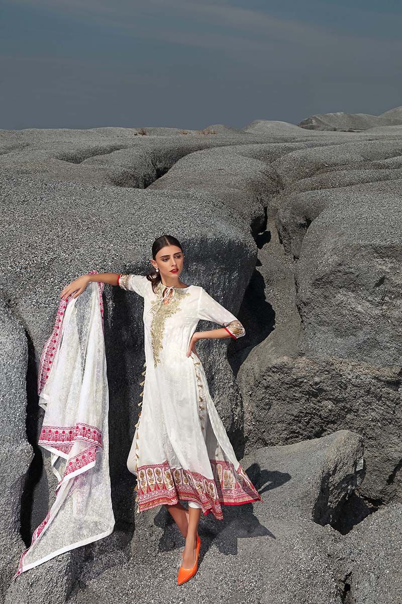 Fabric: Embroidered Net Dupatta - 2.5 meters Neckline Printed Shirt - 1.75 meters Dyed Bottom - 1.5 meters |
