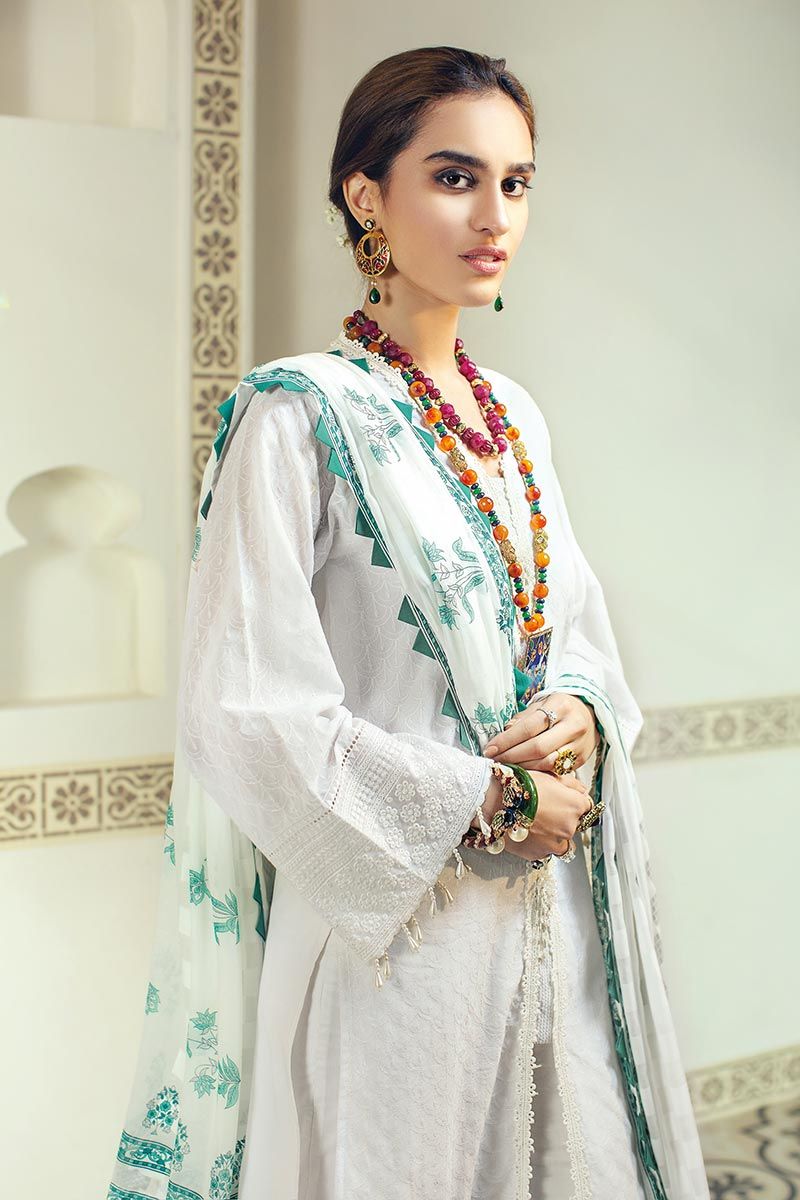 Fabric: 100% Cotton Printed Embroidered Dupatta - 2.5 meters 100% Cotton Embroidered Shirt - 5.01 meters 100% Cotton dyed Bottom - 1.75 meters 100% Polyester Embroidered Lace Buttons - 2 |