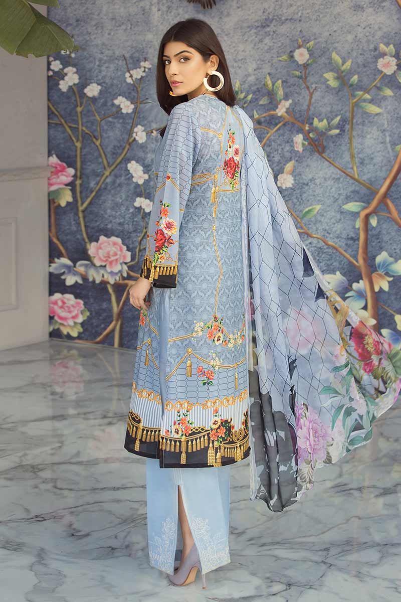 Fabric: Tissue Silk Printed Dupatta - 2.5 meters 100% Cotton Printed Shirt - 3 meters 100% Cotton Dyed Embroidered Bottom - 1.65 meters |