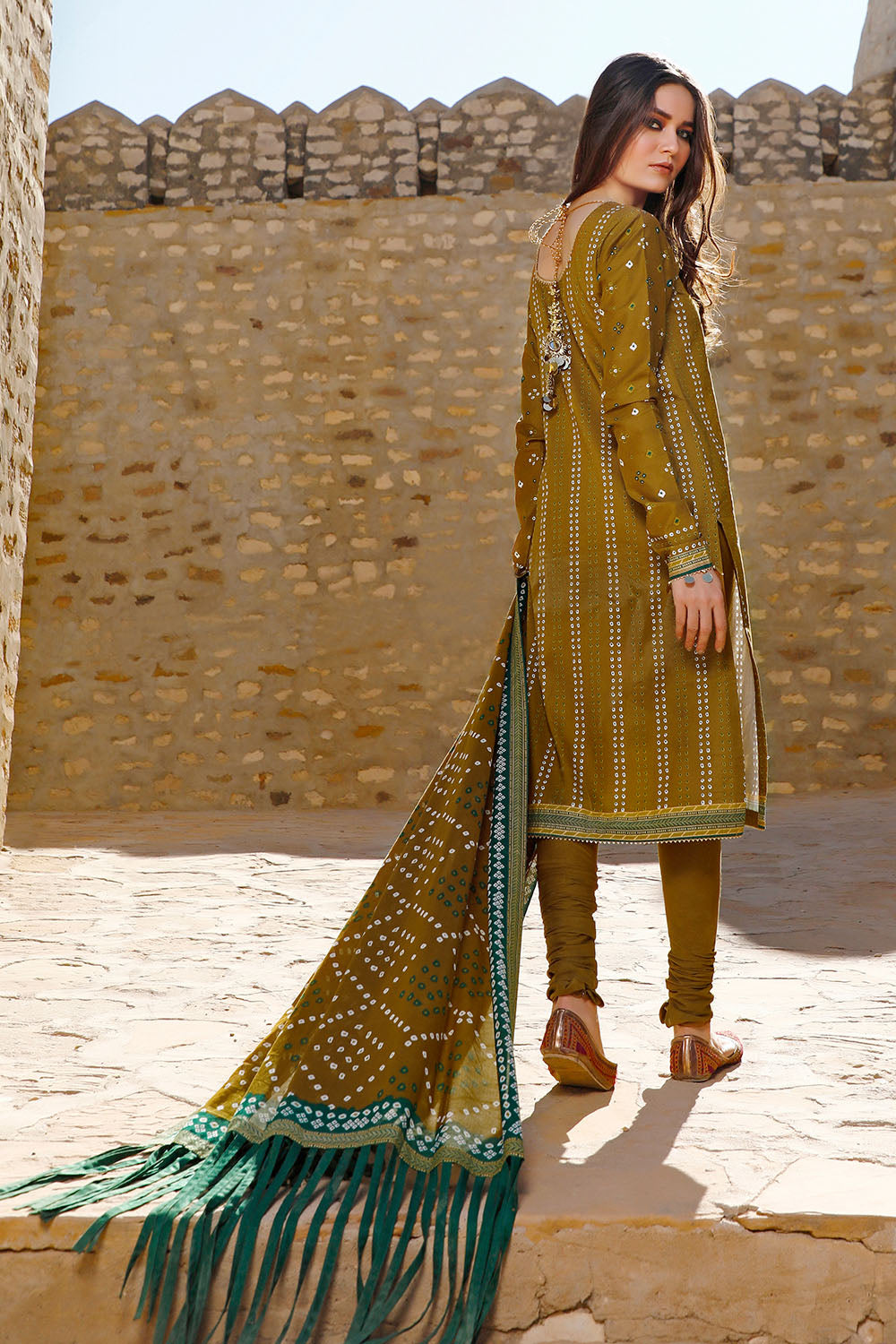 Fabric: Gold Printed Dupatta – 2.5 meters Gold Printed Shirt – 1.75 meters Dyed Lawn Trouser – 1.75 meters |