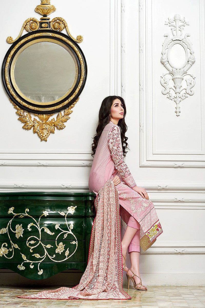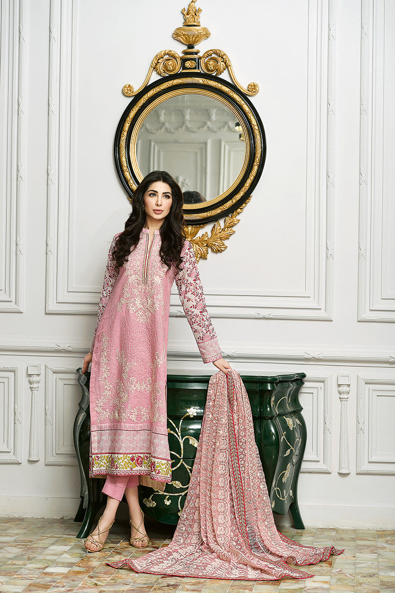 | Fabric | Embroidered Front - 1.25 meters Printed Back - 1 meter Printed Sleeves - 1 meter Embroidered Chiffon Dupatta - 2.5 meters Dyed Shalwar - 2.5 meters |