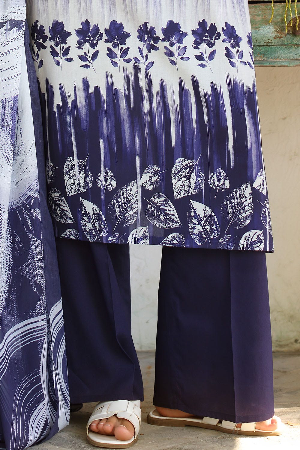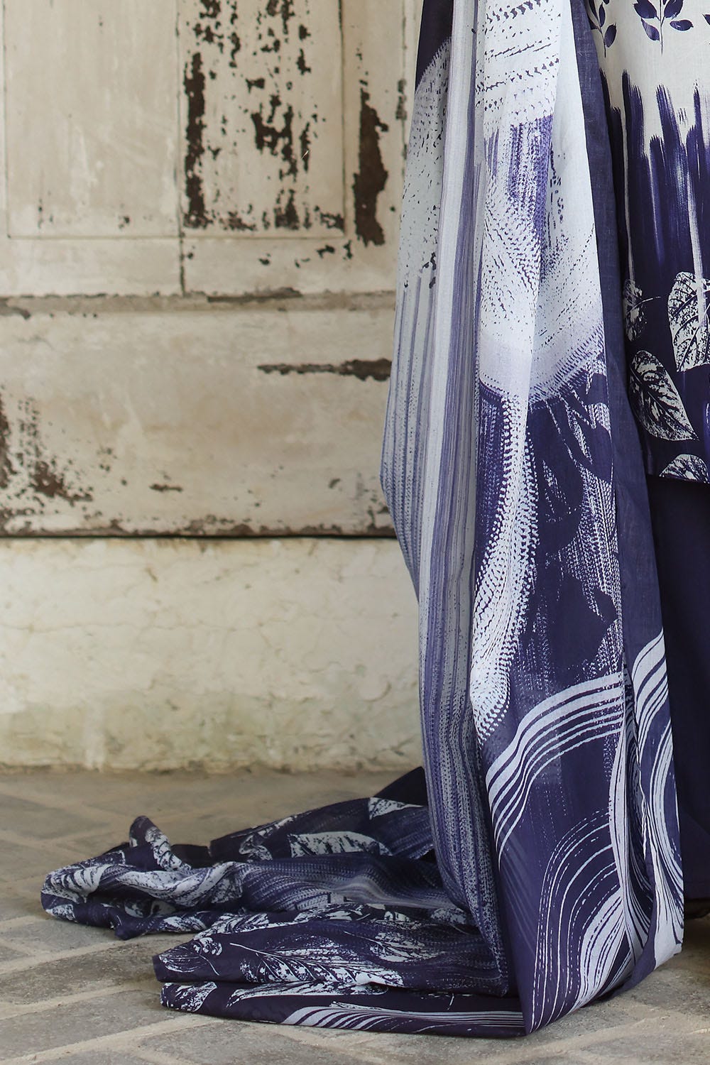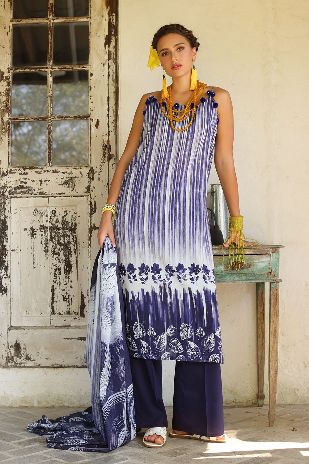 Summary: Experience the joy of summer with this stylish and comfortable three-piece printed lawn suit by Gul Ahmed. This beautiful ensemble is perfect for daily wear during the warmer months. Crafted from high-quality printed lawn, the suit offers a soft and breathable feel, ensuring all-day comfort. The shirt features a captivating blue and white print, exuding a refreshing and chic appeal. The vertical stripes pattern adds a touch of modern elegance, while the delicate floral and leaf motifs at the hem enhance its feminine charm. This unstitched suit allows you to customize the fit and style according to your preferences. The matching printed lawn dupatta complements the shirt beautifully, adding a touch of grace to the overall look. The dyed trouser in a solid navy blue color creates a striking contrast and completes the ensemble with sophistication. This versatile Pakistani Lawn suit is ideal for casual outings, daytime events, or simply relaxing at home. Pair it with your favorite sandals or heels and minimal accessories to create a effortlessly stylish look. This Gul Ahmed creation is a must-have for your summer wardrobe. Buy this CL-52058 suit now and embrace the season in style.