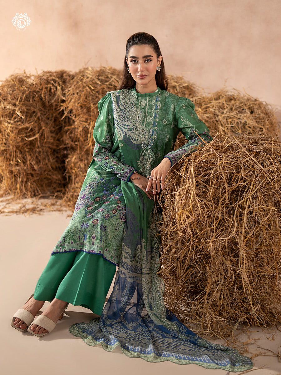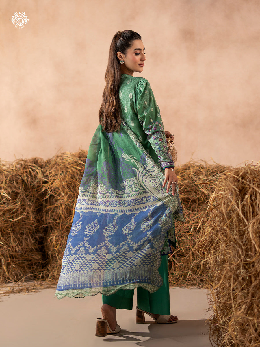 Summary: Embrace the essence of summer with this beautiful green Pakistani suit from the GullJee Rang Pasand collection. This unstitched dress is crafted from premium digital printed lawn, a fabric known for its lightweight and breathable quality, making it an ideal summer outfit. The kameez stands out with an exquisitely embroidered neckline, elevating it from casual to formal wear. Its refreshing green tone makes it a versatile choice for various festive events, including Eid gatherings or daytime parties. This ethnic wear piece combines traditional aesthetics with modern comfort, offering a perfect ensemble for your formal wardrobe.