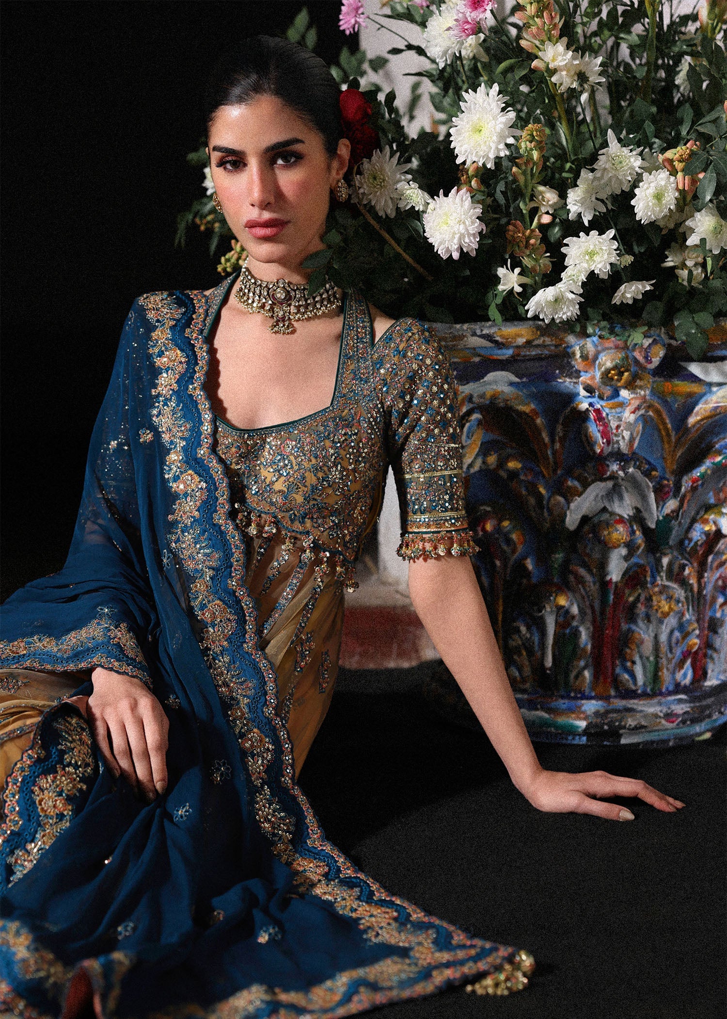 Fabric: Color: Butter yellow Product Description: This exquisite ensemble showcases a meticulously crafted pishwas featuring embroidered net panels with embroidered daman border and embroidered sleeves that create a fluid, graceful silhouette with refined detailing. Paired with a printed Korean raw silk sharara, the look is elevated through a rich interplay of texture, structure, and contemporary design. The ensemble is completed with a chiffon dupatta adorned with delicate embroidery and embroidered satin borders adding a light, ethereal finish. Designed for festive celebrations and formal occasions, this outfit embodies elegance, sophistication, and artisanal craftsmanship with a modern aesthetic. Fabric Details: