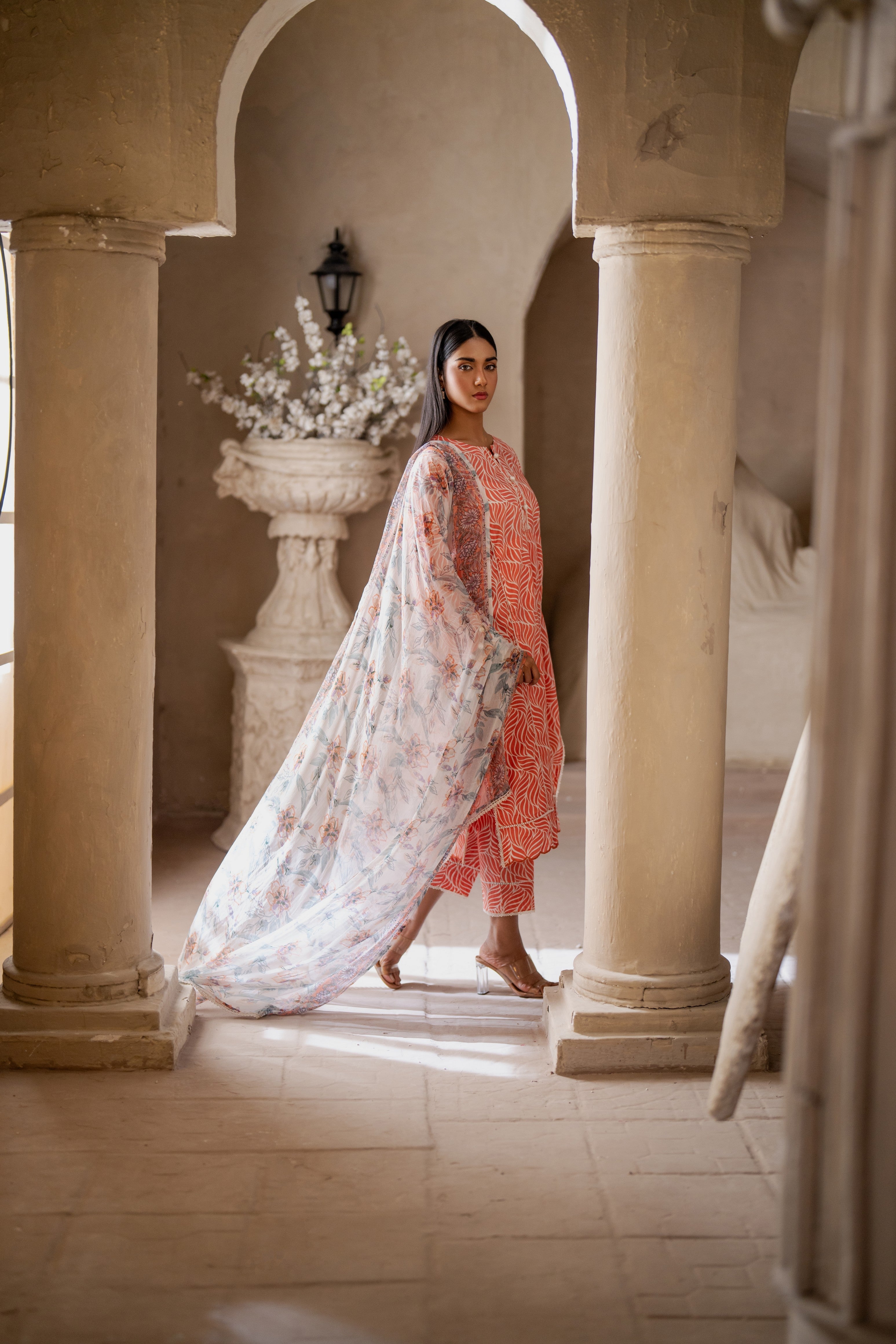 Fabric: Top Fabric: Printed Lawn Cotton Bottom Fabric: Dyed Cotton Dupatta Fabric: Printed Chiffon Cotton |